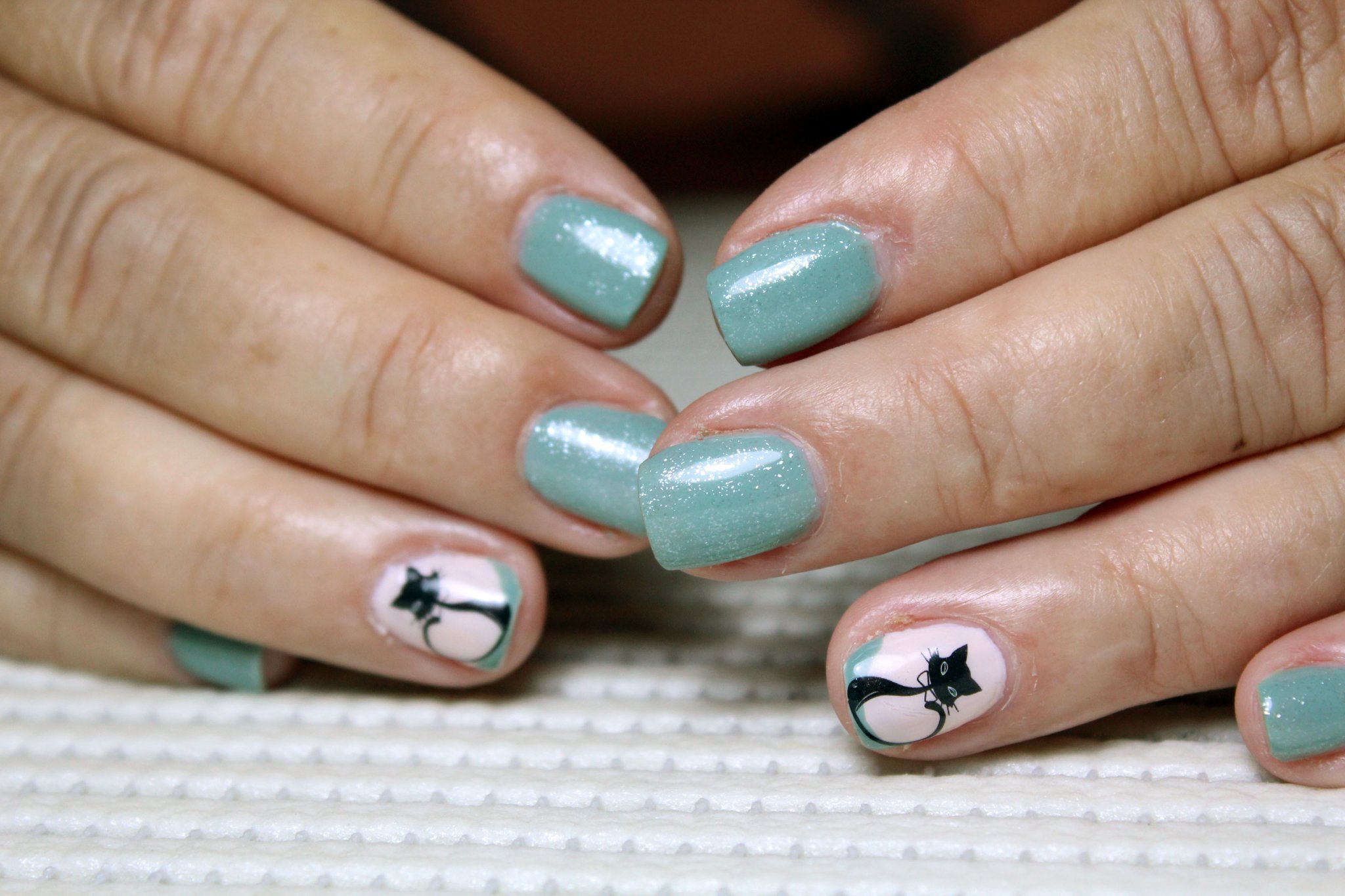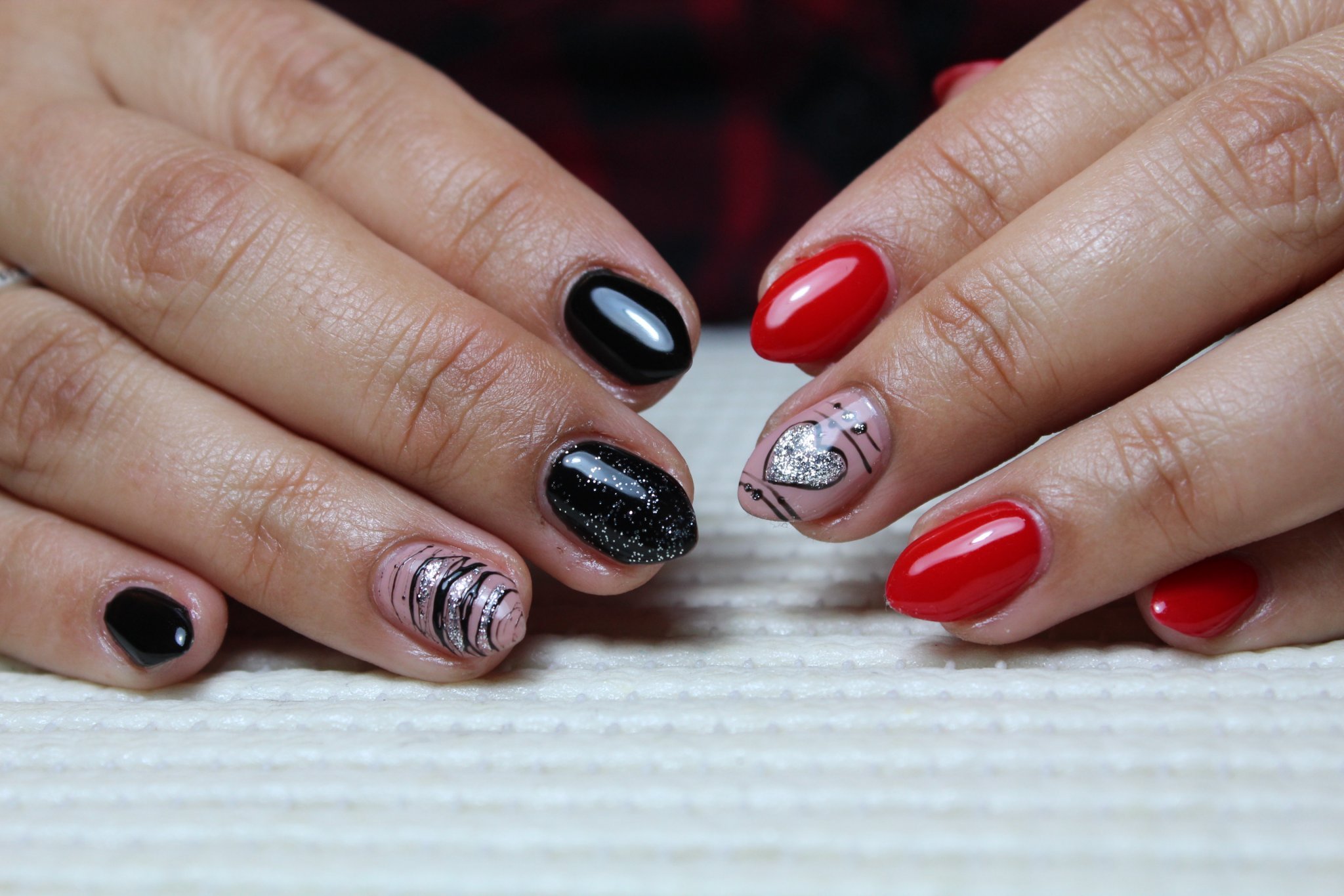 Цвете, споделяла съм и друг път - кръгла нула съм в декорации, а и тук не е много прието. Маникюри като първия, който показваш и последния в моите среди предизвикват вдигане на вежди. Днес в магазина видях много елегантна дама с винено червено, квадратни нокти. Констатирах на глас, че има страхотни нокти и маникюр и тя сподели, че се прави в салон до нас с гел на ОПИ. В целия магазин тя беше единствената с бляскав, елегантен маникюр. Касиерката имаше кървящи, огризани до дъно нокти, В много салони до скоро изобщо не правеха декорации. С моето белене на трети ден се сещаш, че няма да седна да си правя 3 часа омбре, печати или нещо подобно. Другото е, че ако си направя нещо дъщеря ми веднага ревва да и правя същото и на нея, на ръце и крака..И все недоволна как съм го направила. Като малка се радваше на слой Гелиш, ама сега, на 15г иска блик, тънък топ, да не пипам с пила кутикулите, нюд половината матов, другата третина с пигмент и линия малко въз ако, ама не точно. Не си е работа Laughing