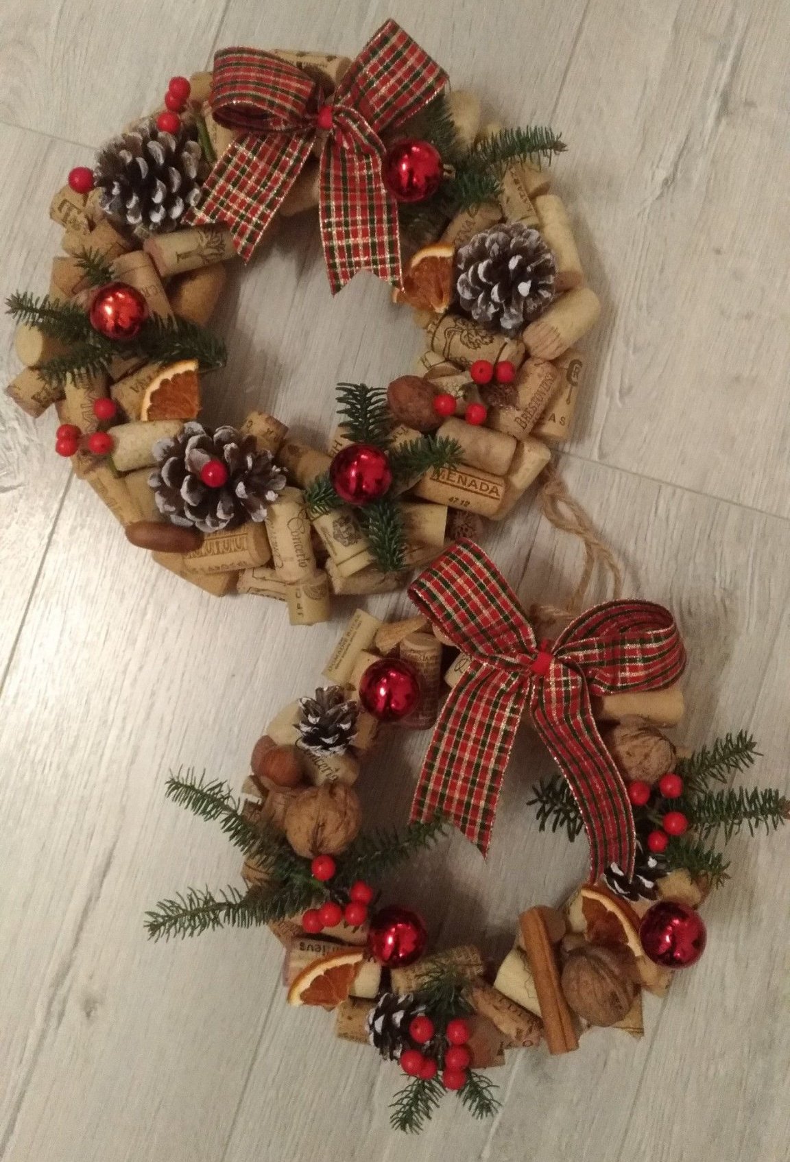 Преди няколко години реализирах идеята с венеца от коркови тапи. Всяка година подновявам с нещо, я панделка, я украса (правят ми ги в цветарски магазин, от мен само идеите Simple Smile