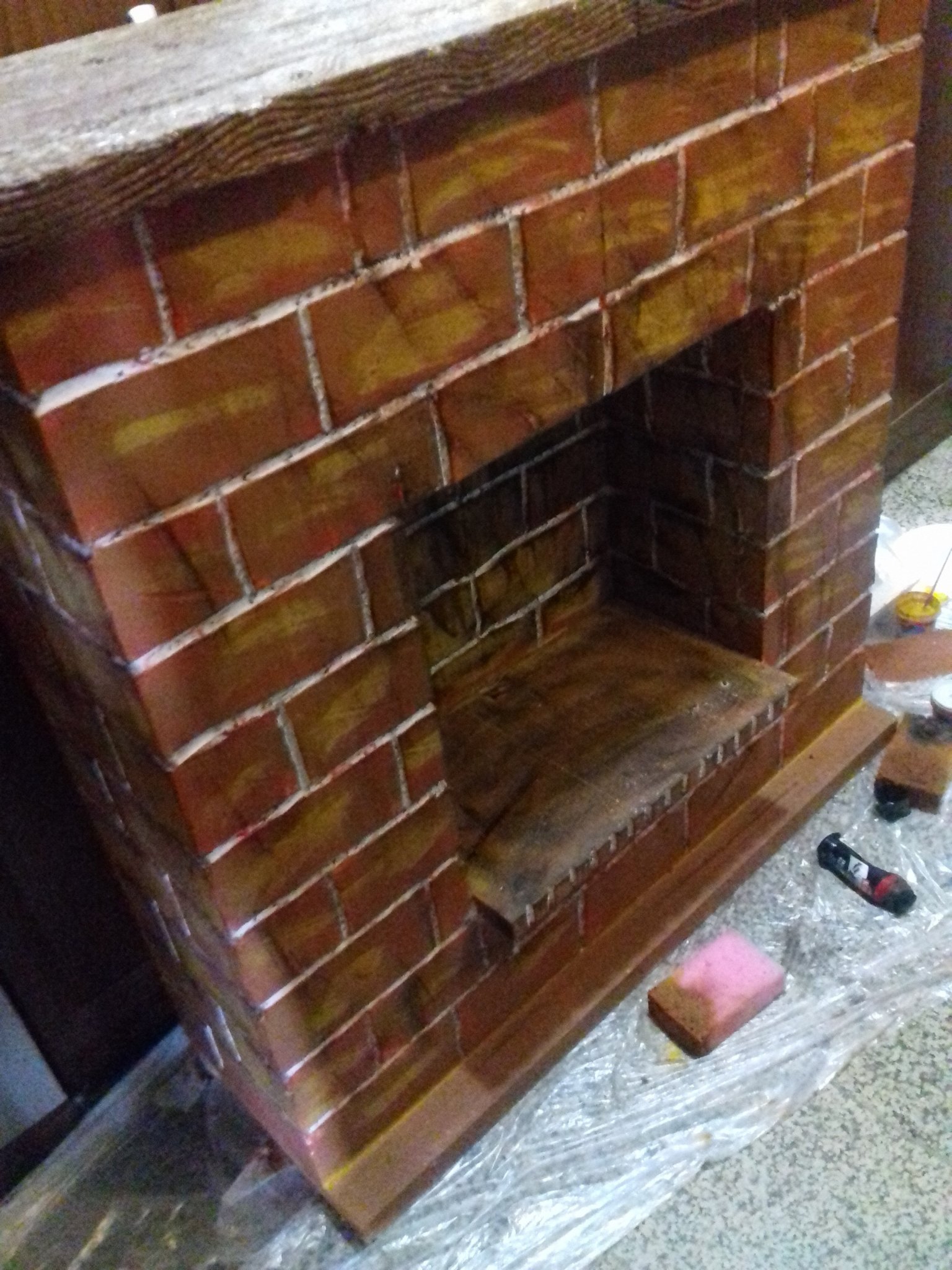 Първата снимка е камината с първи цвят в червено (след това съм нанесла, кафяво и охра, да се получи крайният цвят)