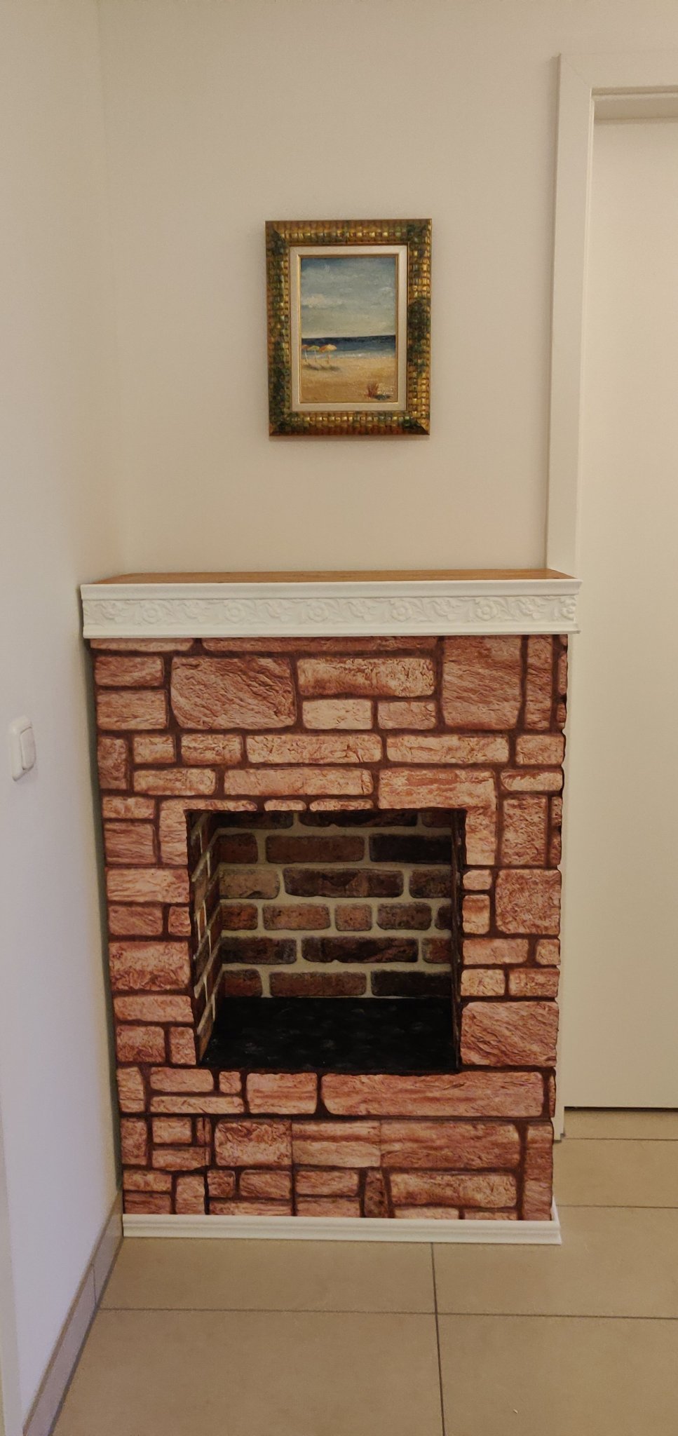Доволни сме как стана, аз не си я представях така добре. Чудя се дали не е много шарена, но каквито истински камини съм виждала, все са няколко цвята...