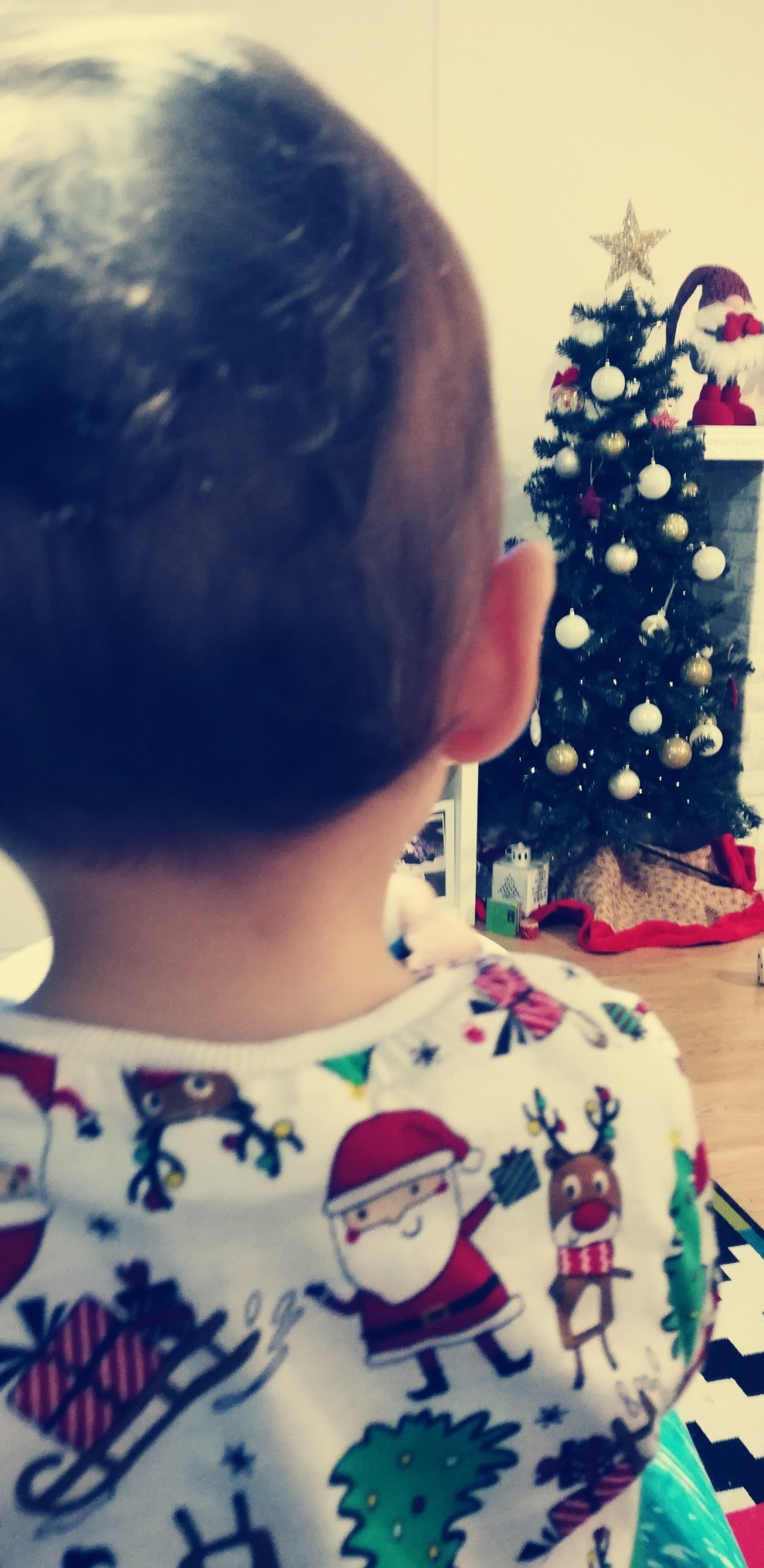 Детето с коледна блузка от Пепко, че ги снимаха за календари в яслата Grinning