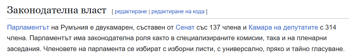 Чета днес в уикипедия и не мога да разбера каква е тази полова дискриманация в румънския парламент - съставен бил от членове с 137+314 члена.