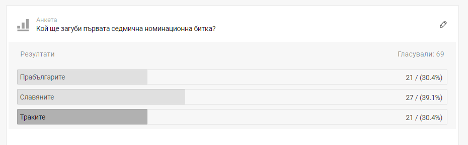 Ако прабългарите утре не спечелят, Роберта ще е на пангара. Юлиян ме дразни все повече. Егати надменното и нагло поведение, все едно верно са му ученици и трябва да му се обясняват и да му се доказват 😠