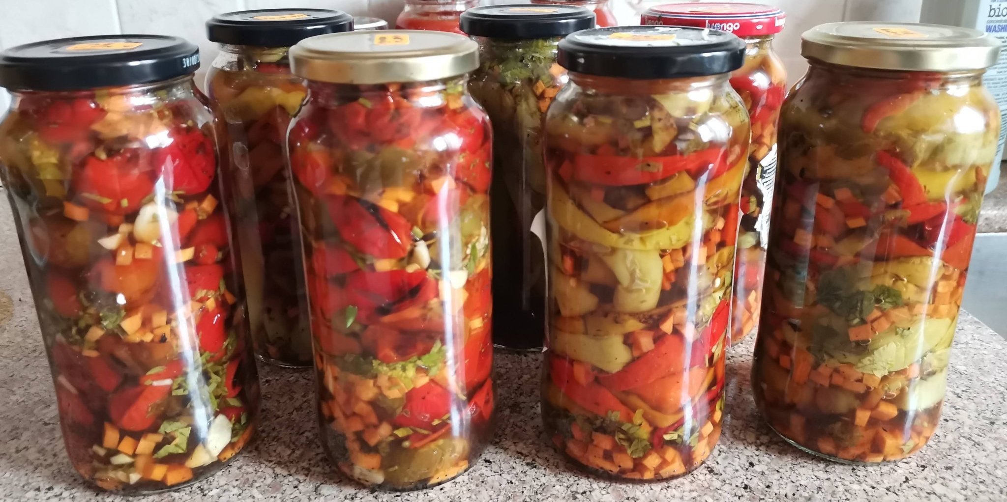 Бурканите за консервиране могат да бъдат стерилизирани, като се пълнят с вряща вода догоре, докато са горещи. Веднага след напълването им се поставят капачките и се проверява дали са здраво затворени. Ако не са винтови капачки, ръбовете могат да бъдат избърсани с нож. След това бурканите трябва да се завият плътно и да се проверят капаците. Без стерилизация е задължително бурканите да се пълнят с вряща вода веднага след сваляне от огъня или изключване на нагревателя.
