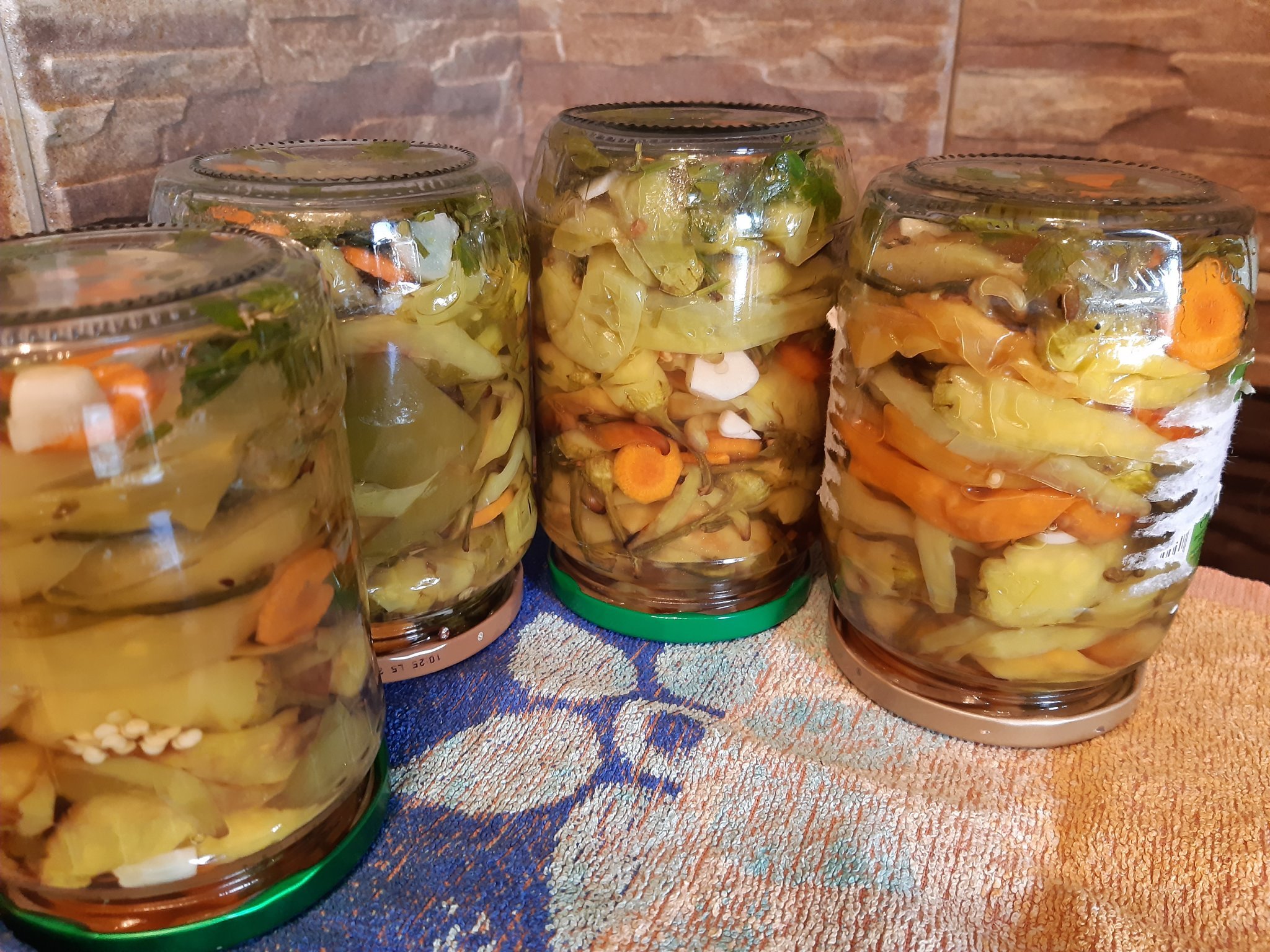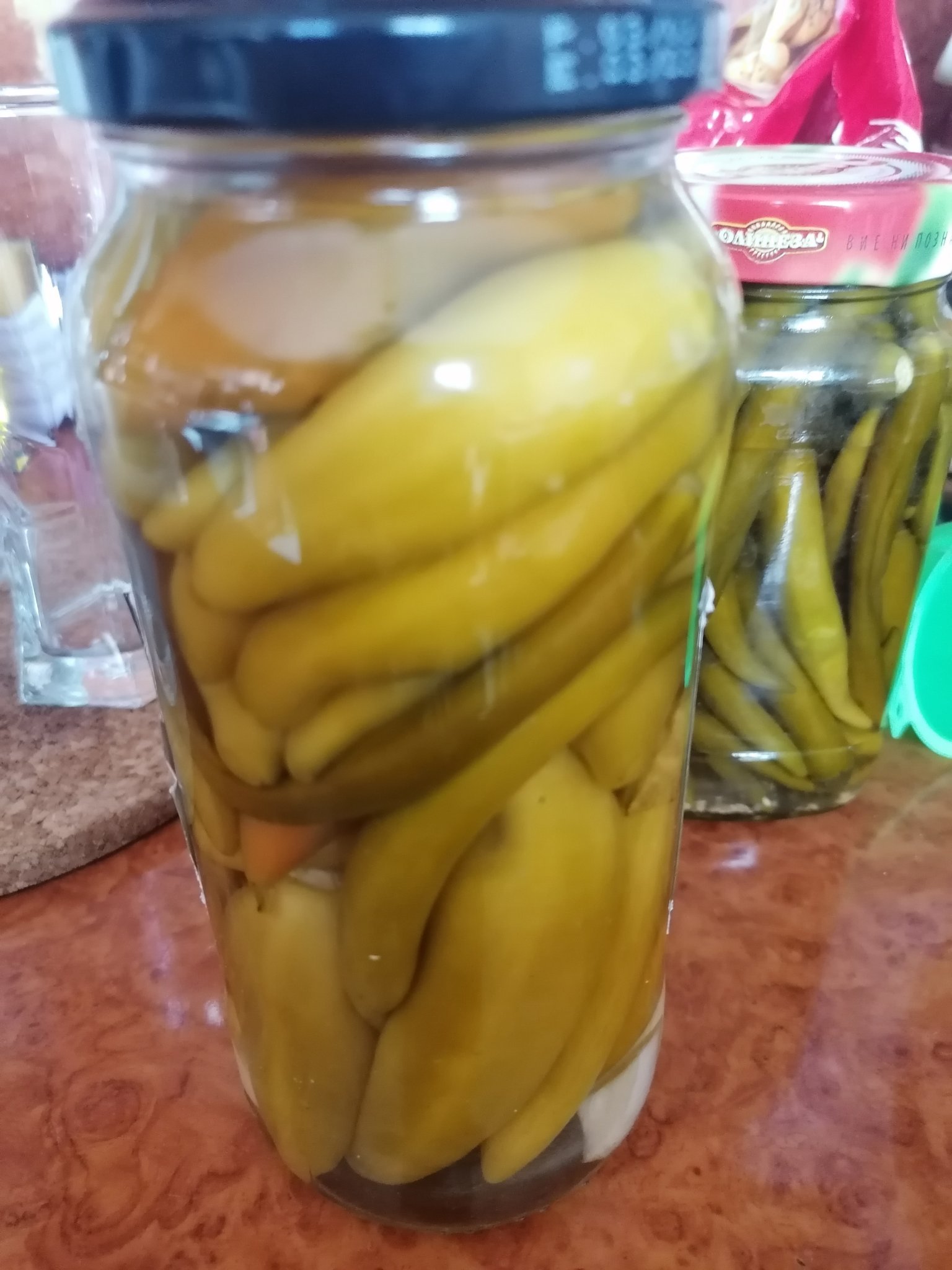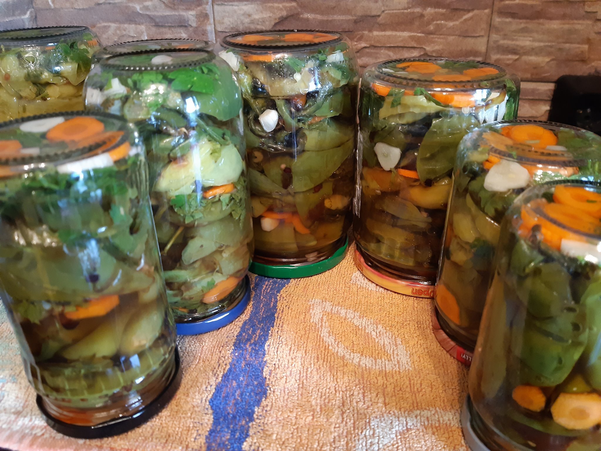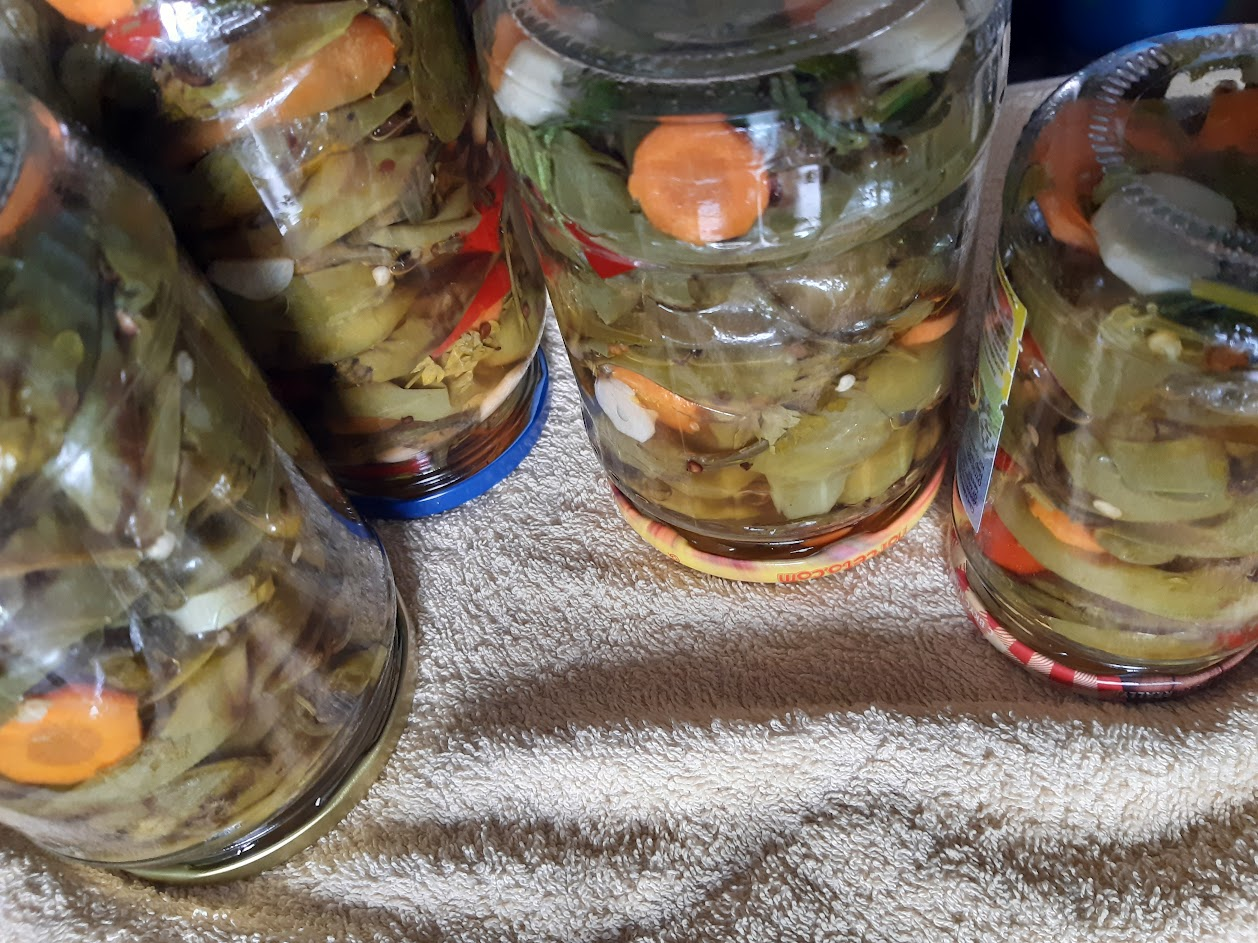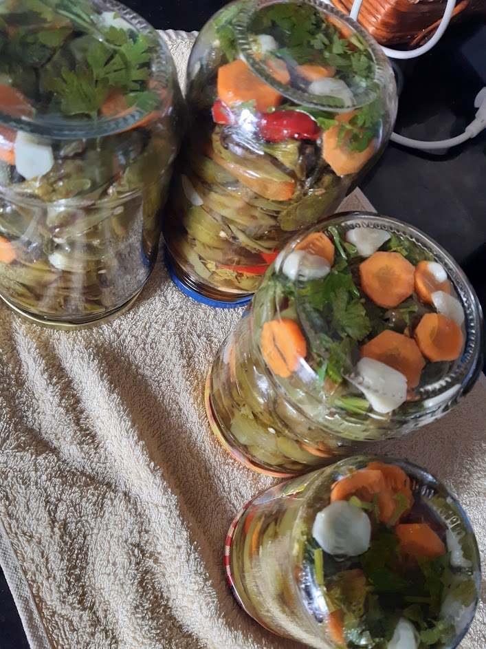 опуках ги във фурната поне тук там да има по някоя шарка и да си променят цвета, залях ги с вряла марината и смятам утре да ги натъпча в бурканите като залея със сока ,а сега ми даваш идея и ще сложа аспирин за по-сигурно