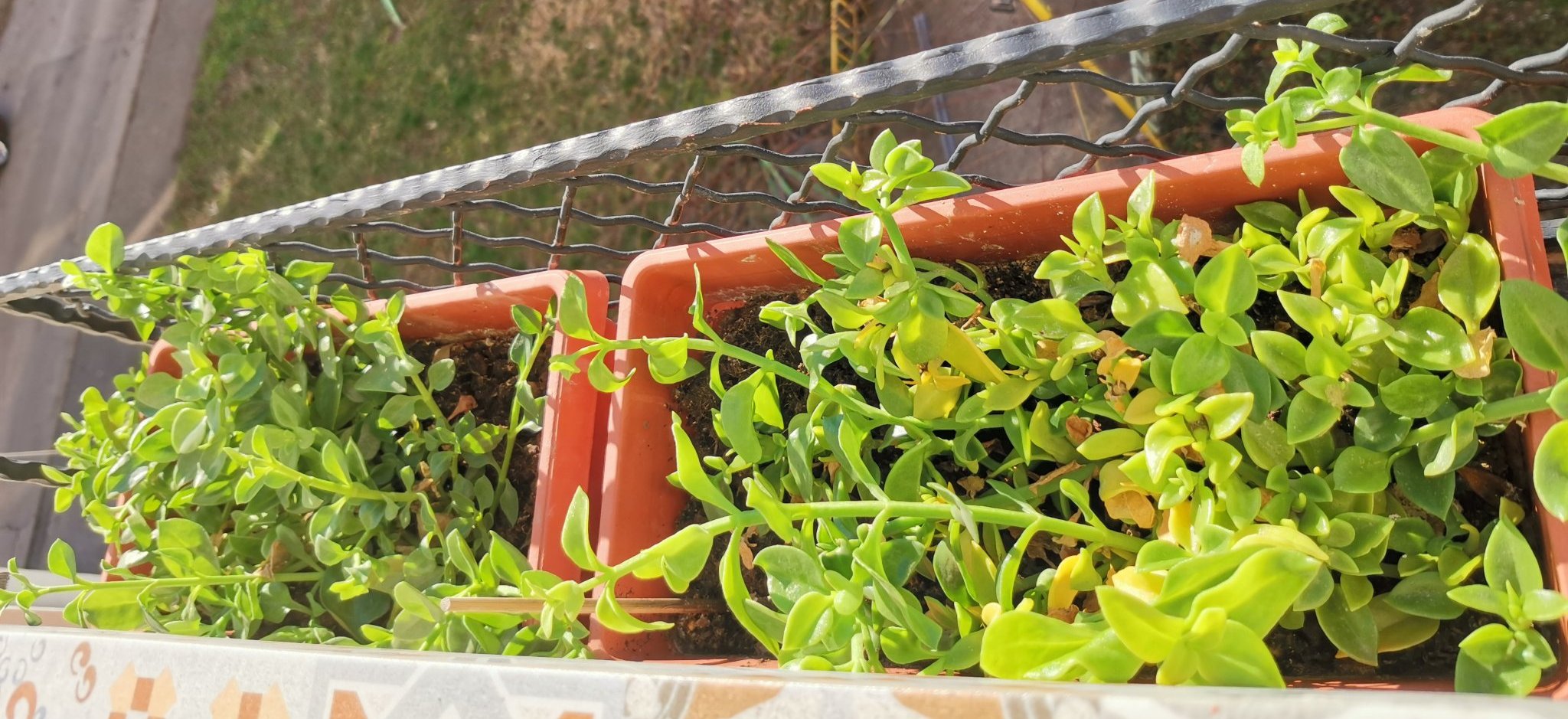 Мушкатата на остъкления балкон (остъклението е само срещу дъжд и вятър и не е топло въобще) са свежи като салатки, тези на стълбите са зле, хем че ги поливам. Повехнали, листата хербаризирани, ще им трябва време да дръпнат, а тези които са на студено, даже си цъфтят. Имам и зародиши на ментата в саксията, тук-там има зеленичко над почвата, явно топлото време я подлъга и тя тръгна.