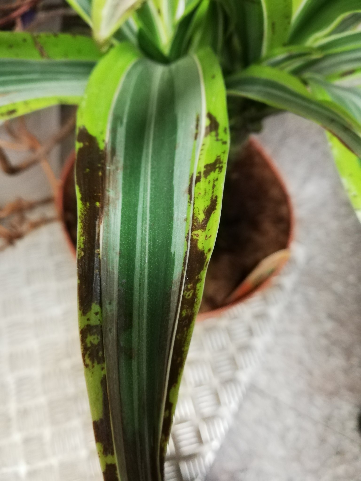 Имам нужда от помощ. Подариха ми тази драцена, но има кафеви петна по листата.