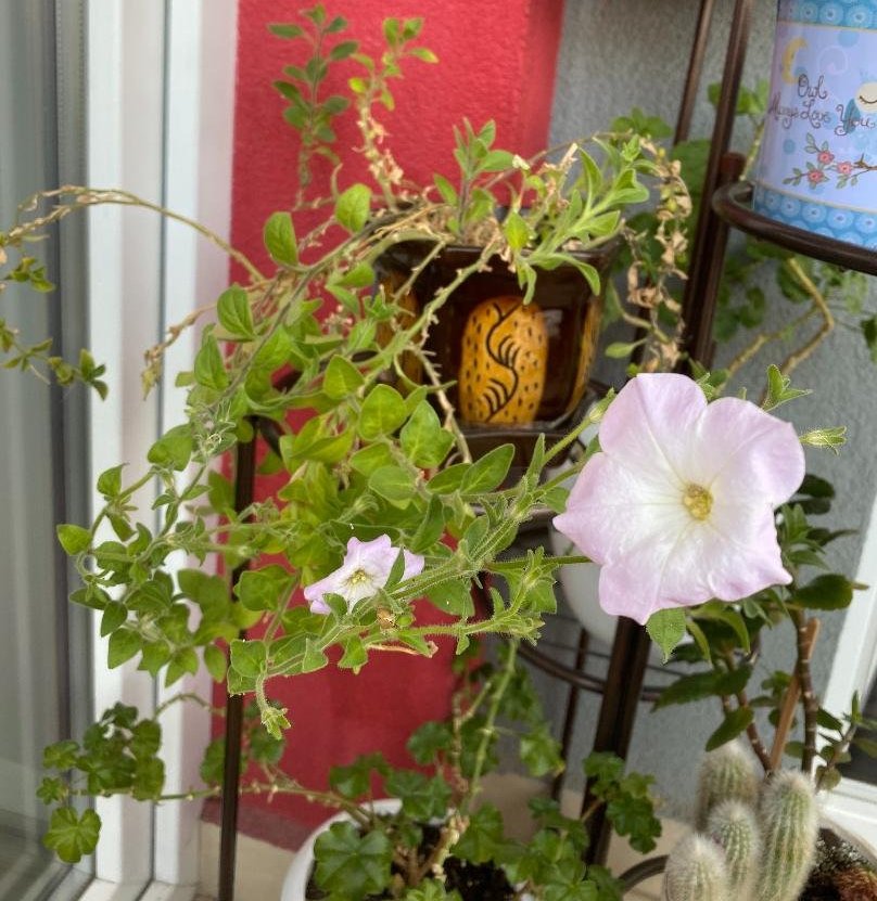 Моите петунии презимуваха на вътре на прозореца и цъфтяха и през зимата. Сега, заедно с мушкатото и съкъзчетата са на терасата. Simple Smile