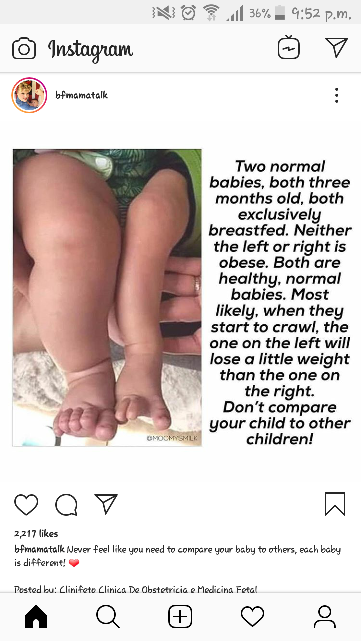 Отглеждаме хора, хората сме с различни мерки, гени, не наддаваме еднакво. Абсурд е,да се говори за приключване на кърмене, защото един месец детето било качило 200, а не 700 или 1600. Моля ви се! По-спокойно. Мислете малко рационално и оставете глупостите на педиатрите настрани за момент. Децата по таблици ли трябва да ги мерим, ако сакън са по-тежки или по-леки от табличката на педиатъра (която между другото е за бебета на АМ), какво правим? Ами аз съм 158см,не порастнах повече, тежа 55 кг. Сега по табличката, Жена с ръст 170см, 55 кг, какво да прави? Нищо! И двете са нормални,така и с децата.