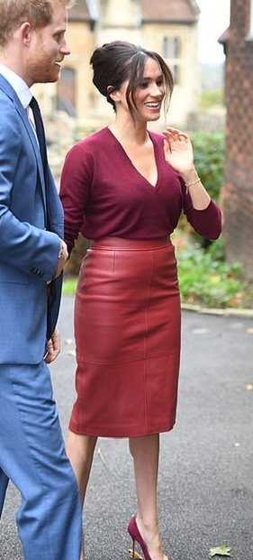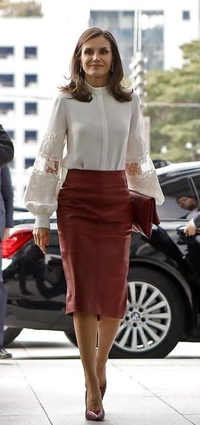 Кралица Летисия от вчера и дукеса Мегън от днес с една и съща кожена пола на Hugo Boss.