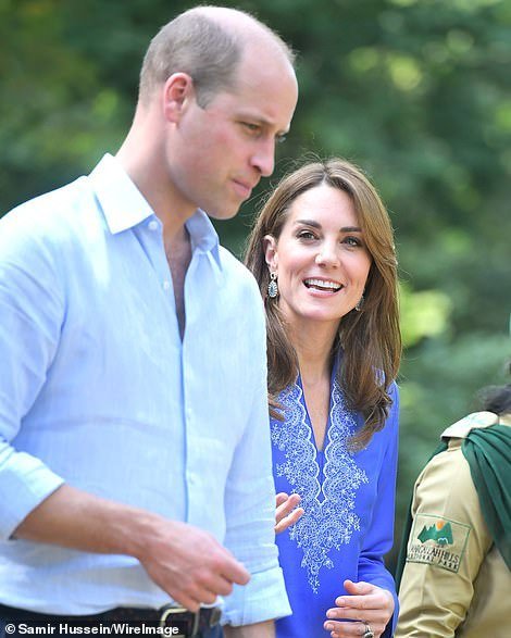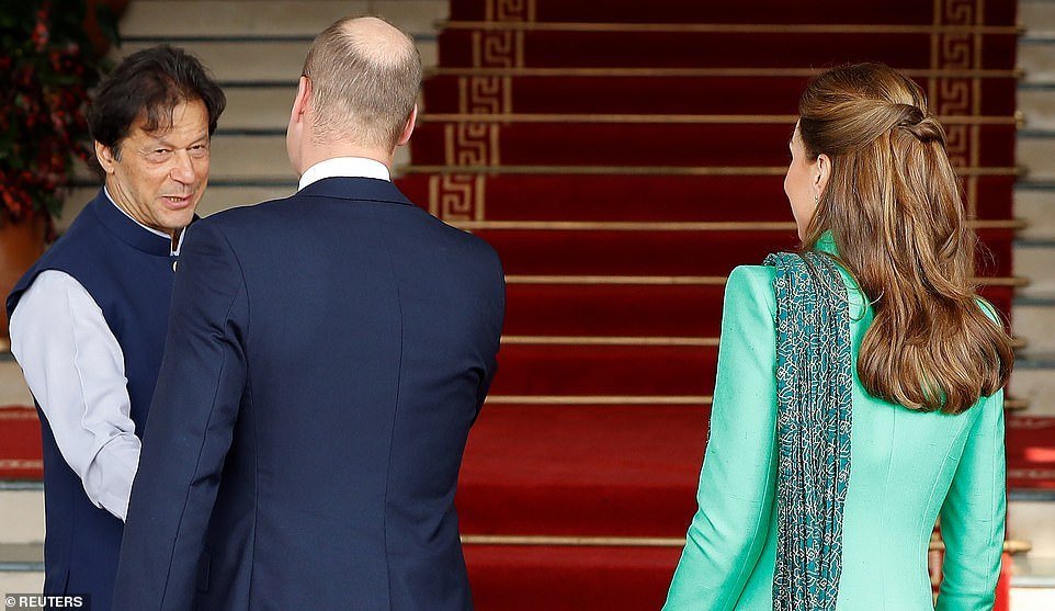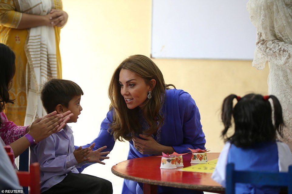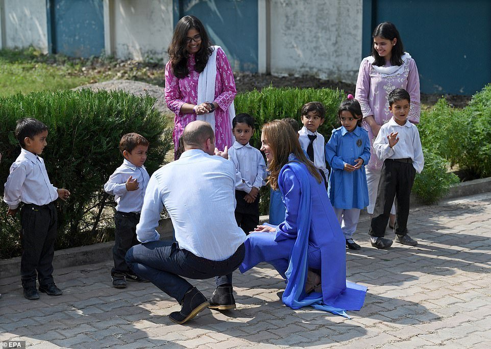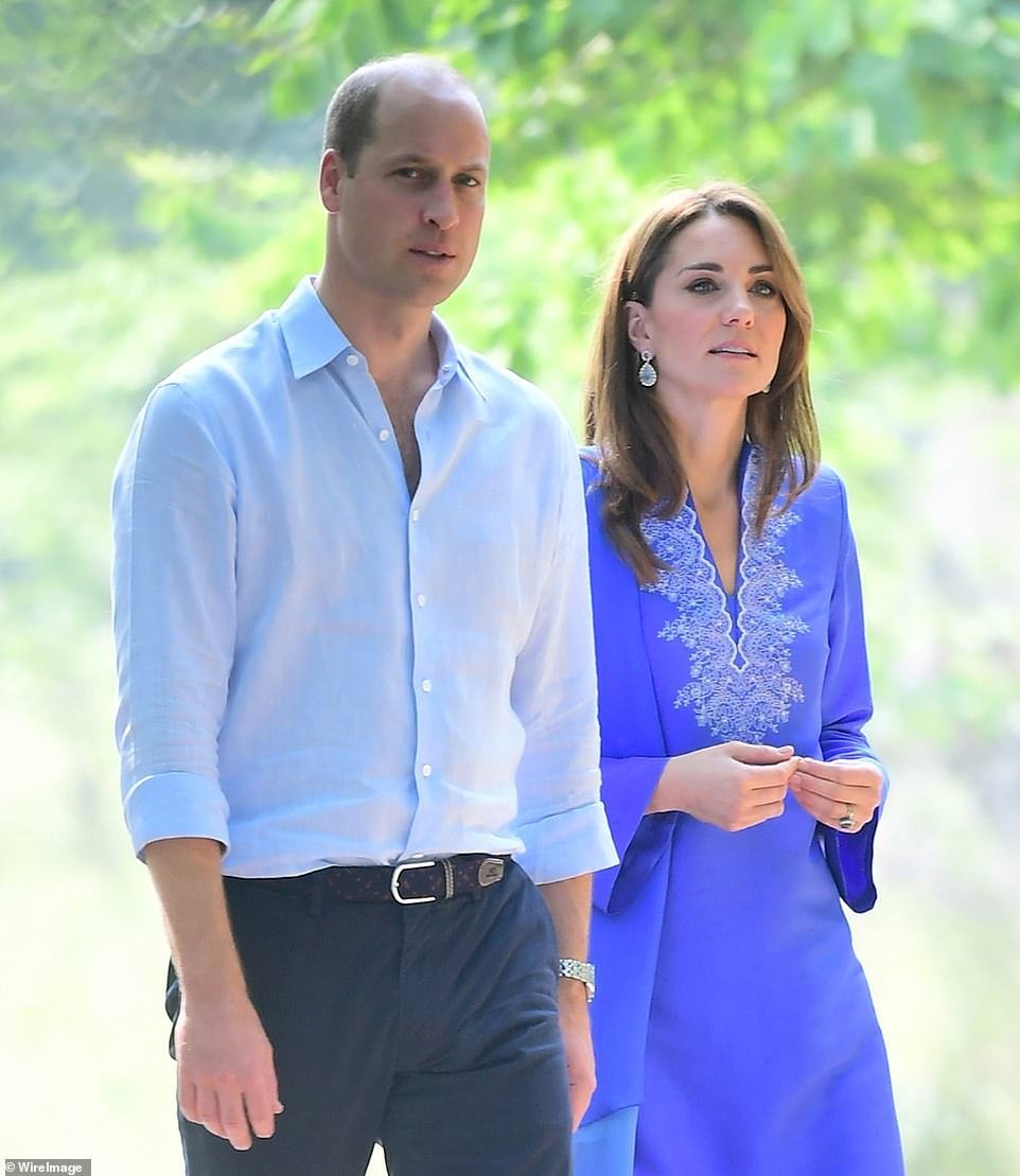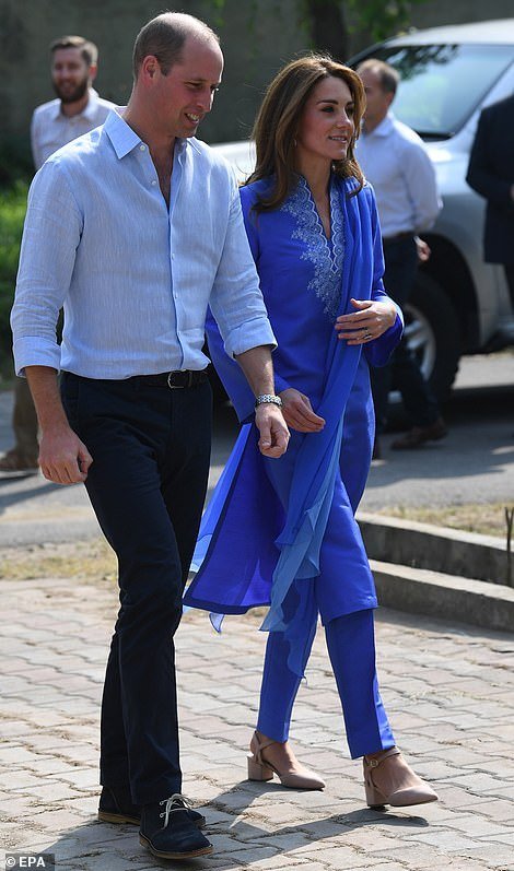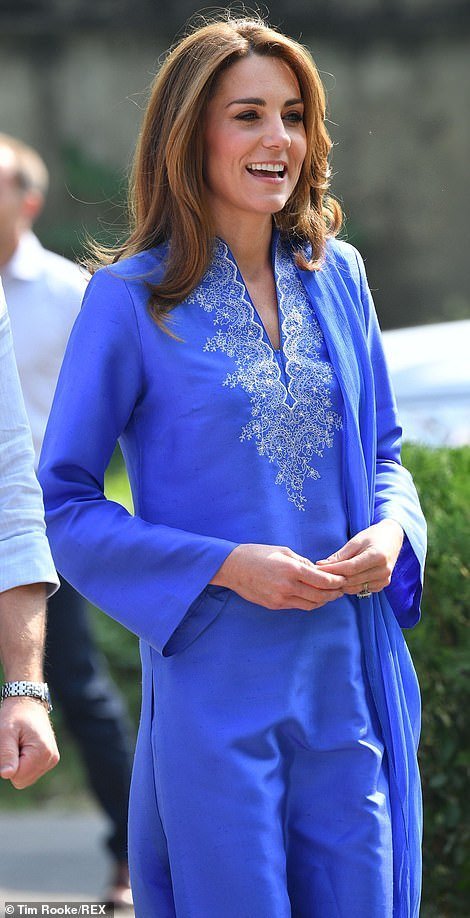 Куртата и шалът на Кейт са на известната пакистанска дизайнерка Maheen Khan.