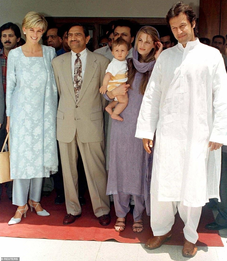Значи, съпругата на Имран Кхан е дамата във виолетово с бебенцето. Жемима Кхан.