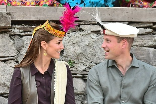 Уилям как ѝ гледа розовите перца на "индианската шапка" на Кейт. Много сполучлив кадър!