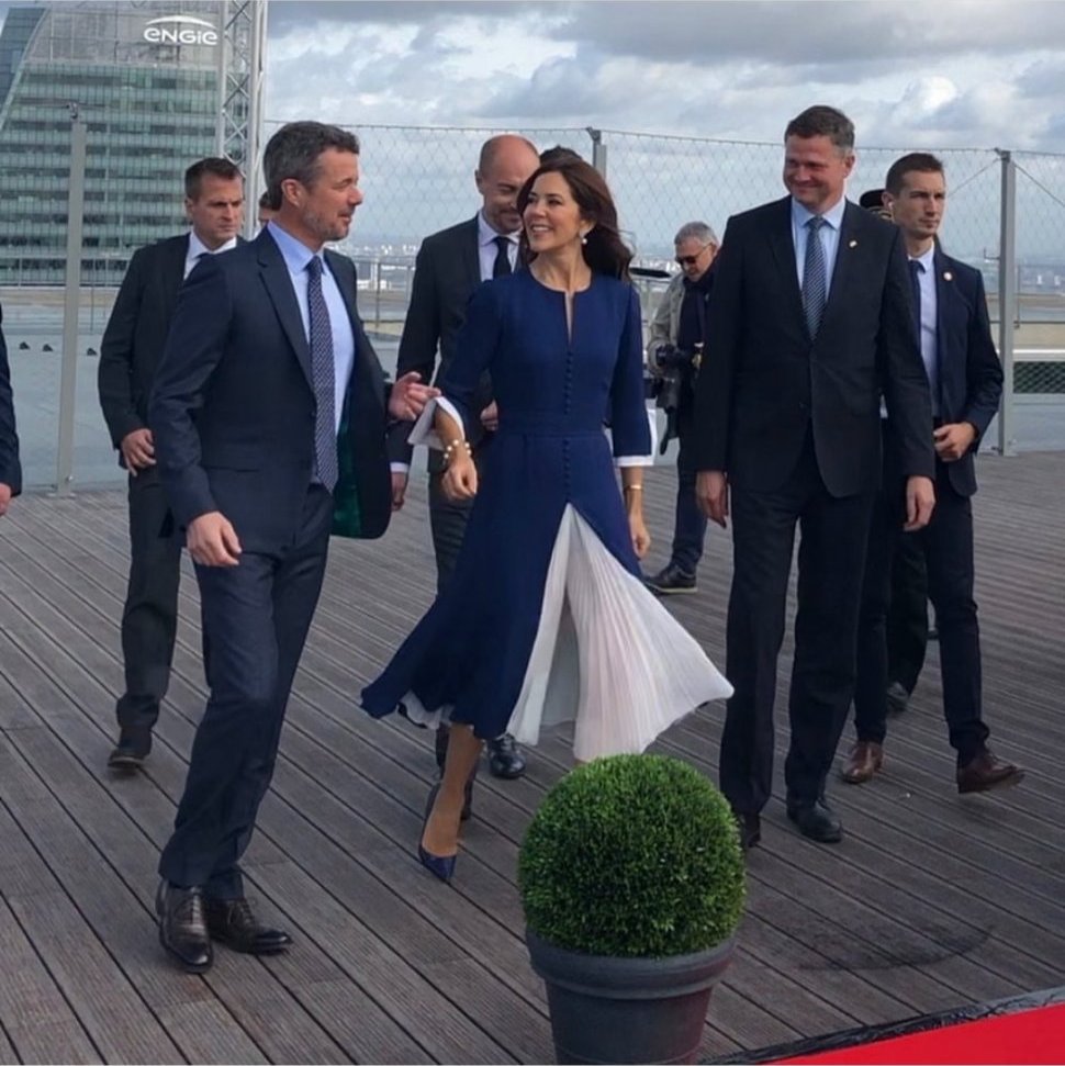 Според мен целия тоалет е рокля, а не пола и палто. На ръкавите има елемент, кореспондиращ с долната бяла част. Интересен е тоалета.