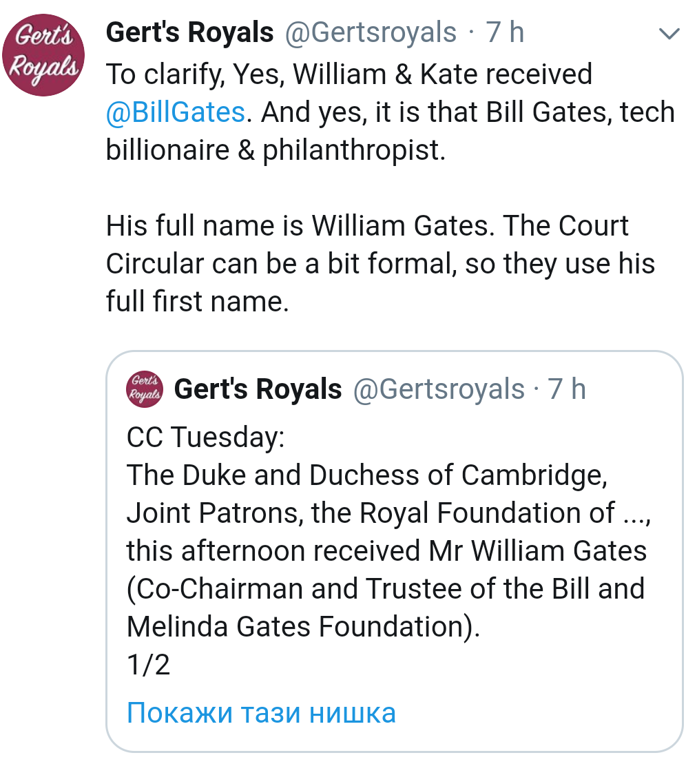 Кейт и Уилям са се срещнали с Бил Гейтс. Готвят някакъв проект заедно. Свързано е с фондациите им.