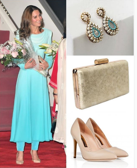 На Кейтиния тоалет само един елекриково розов сет - чанта с обувки липсва. Хем подходящо по стил, хем още по-голям реверанс към домакините. Обаче е зверски изпосталяла.
