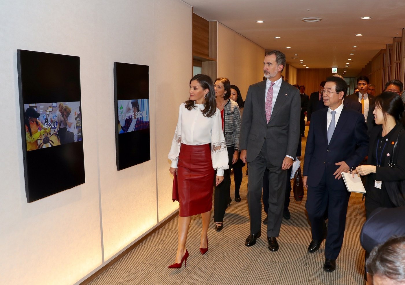 На Летисия е по-добре съчетана  полата с бялата риза, въпреки че на нея пък ръкавите не ми допадат. Нещо комбинацията на кожената пола с тая плътна блуза и цвета не ми харесват. Но обувките на М са много, много хубави.
