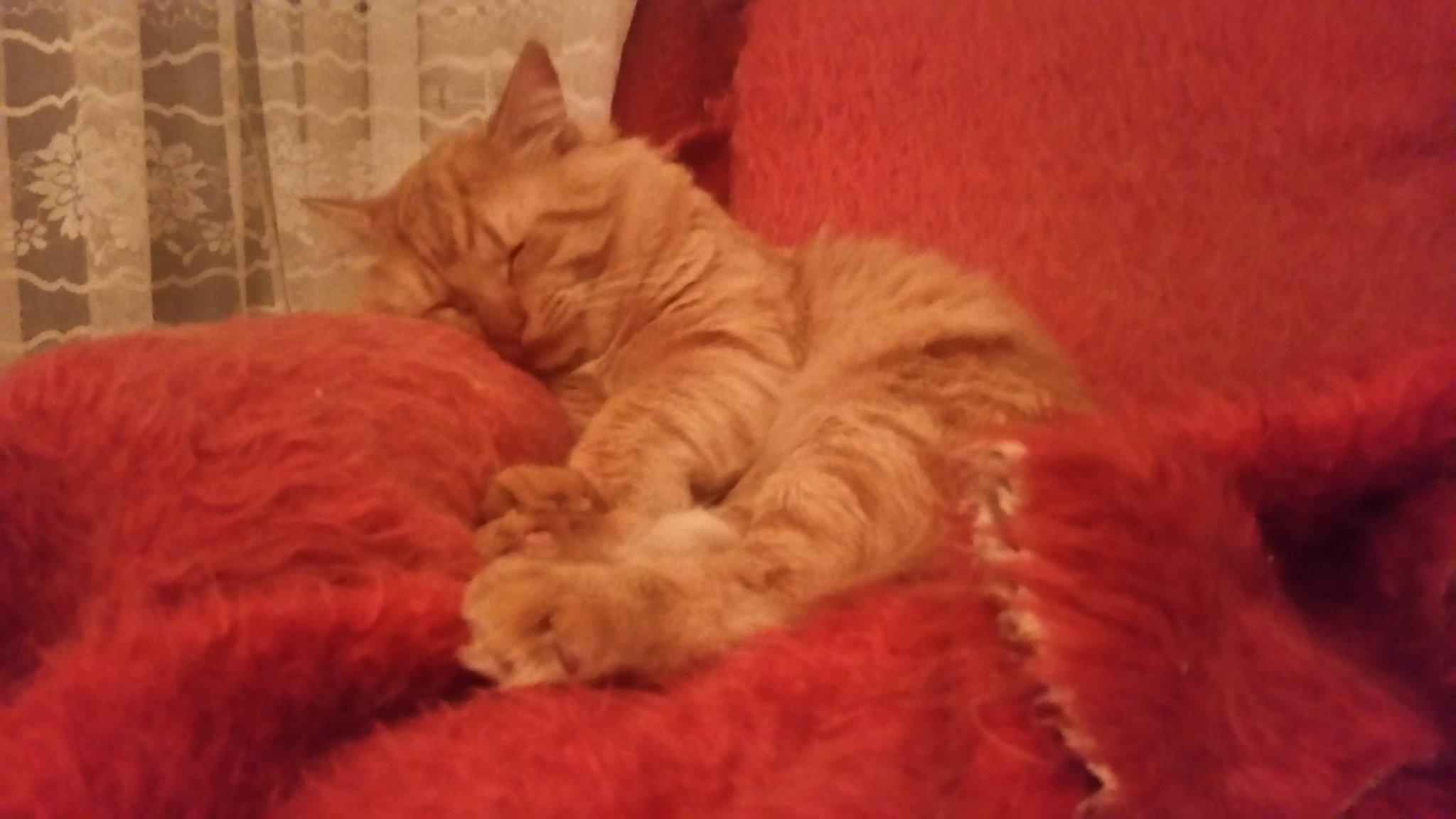 А за лягането вечер: ако не си легнем в 11, се започва един театър - дефилира пред телевизора, дефилира зад телевизора (всеки път изтръпвам, защото с неговите 5 кила мускули спокойно може да го събори, ако поиска), и ако не хване декиш, започва да ни се кара - със звучно мяукане.
