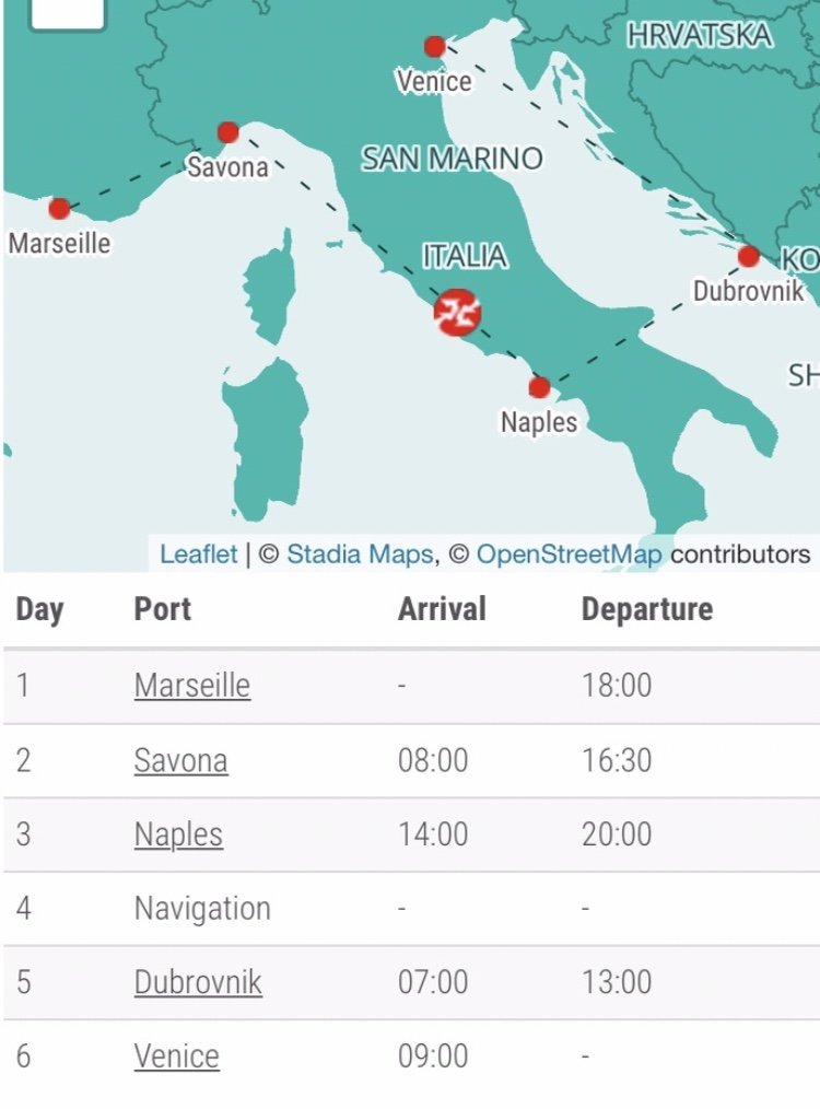 Две нощувки в Местре са включени преди круиза.