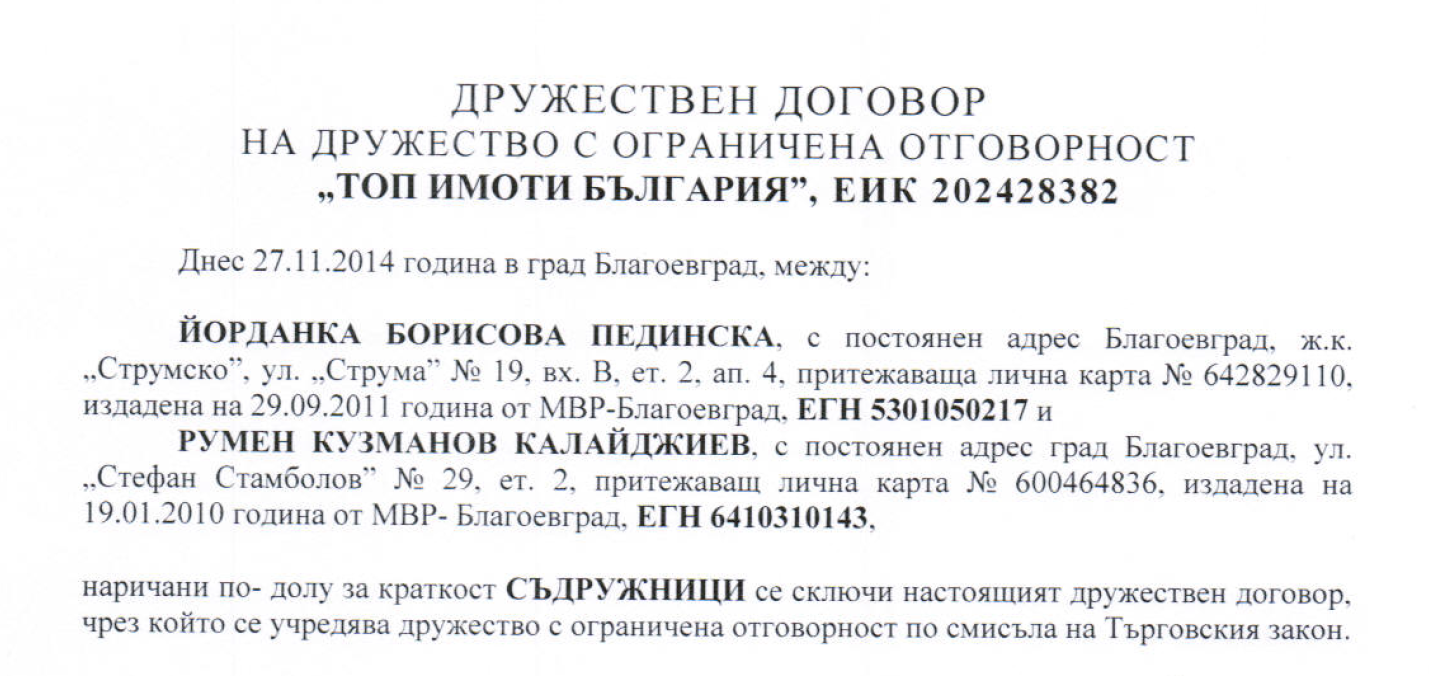 2) Обстоятелства по така нареченото учредяване на фирмата, която стой зад франчайза е : "ТОП ИМОТИ БЪЛГАРИЯ" ЕООД , която след проверка в търговският регистър(всичко там е обществено достояние)