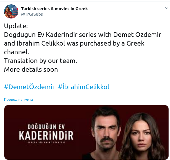 "Dogdugun Ev Kaderindir" е закупен от гръцки канал и се готвят за превода му.Hands Plus1