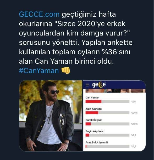 Интересно ми как актьорската гилдия ще посрещне и как турската преса ще отрази тази награда, която е получавана от Къванч Тътлату, Енгин Айкюрек , Чаатай, а сега се връчва на актьор, който няма представа за "занаята" и се слави с "либидото" си.Sunglasses