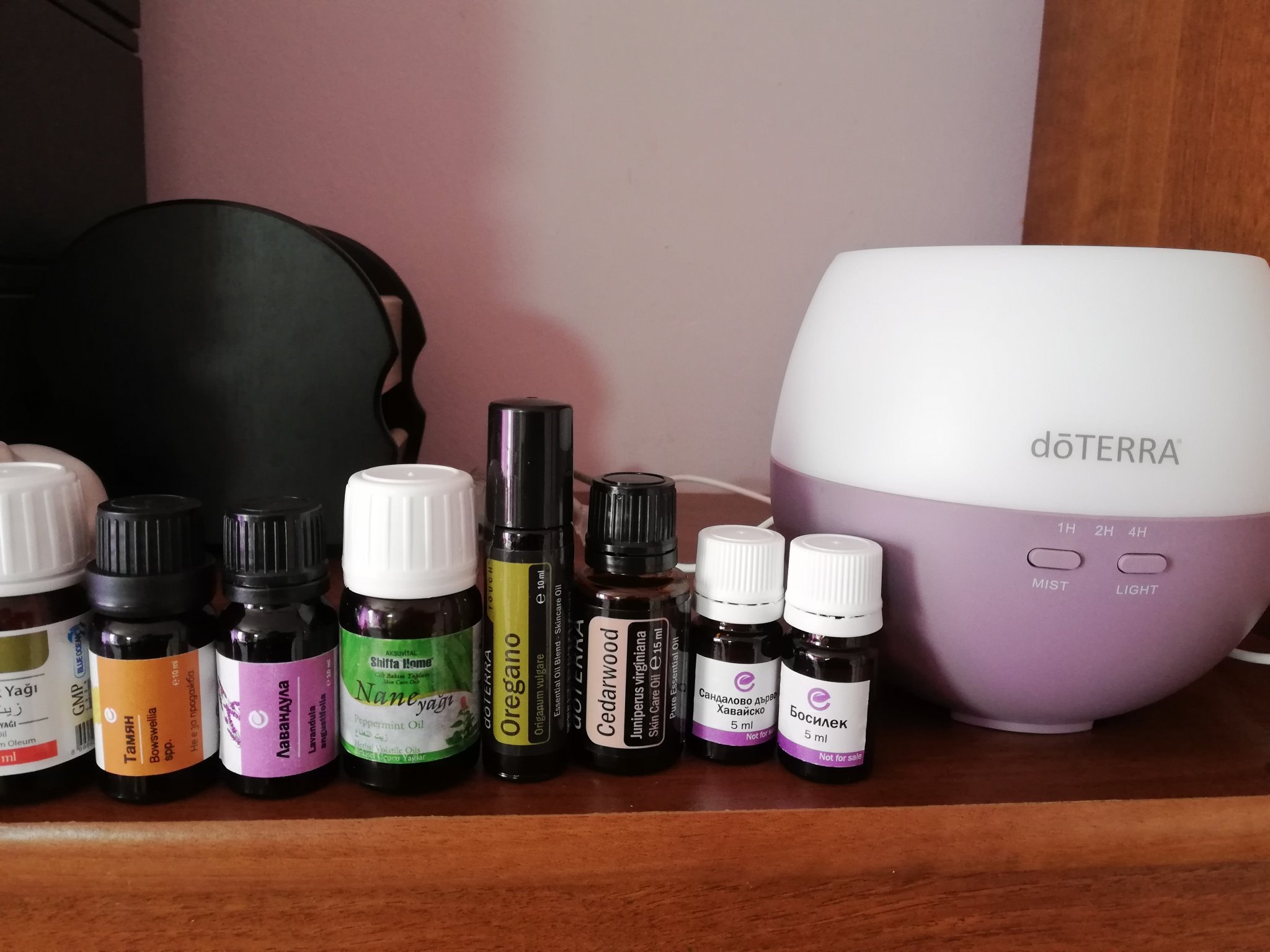 Аз имам два различни дифюзера, няма да ги показвам защото са от Амазон. Съветвам те да вземеш по-голям, малкият ми събира само около 60-70мл и постоянно трябва да го допълвам. И аз като Tankaata си правя различни комбинации според настроението. Много обичам мандарина, лимон, мента, имам и на Дотера няколко бленда от различни масла, Serenity ми е много любимо, с него заспивам. Също много обичам да капвам няколко капки мента (имам peppermint и spearmint и съм пристрастена и към двете) под душа, много освежаващо действа.