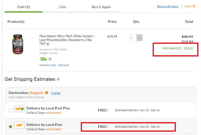 Отстъпката за протеина обаче ми излиза 30%, не 30$. Най-вероятно е техническа грешка, но да не очаква някой нещо нереално.
