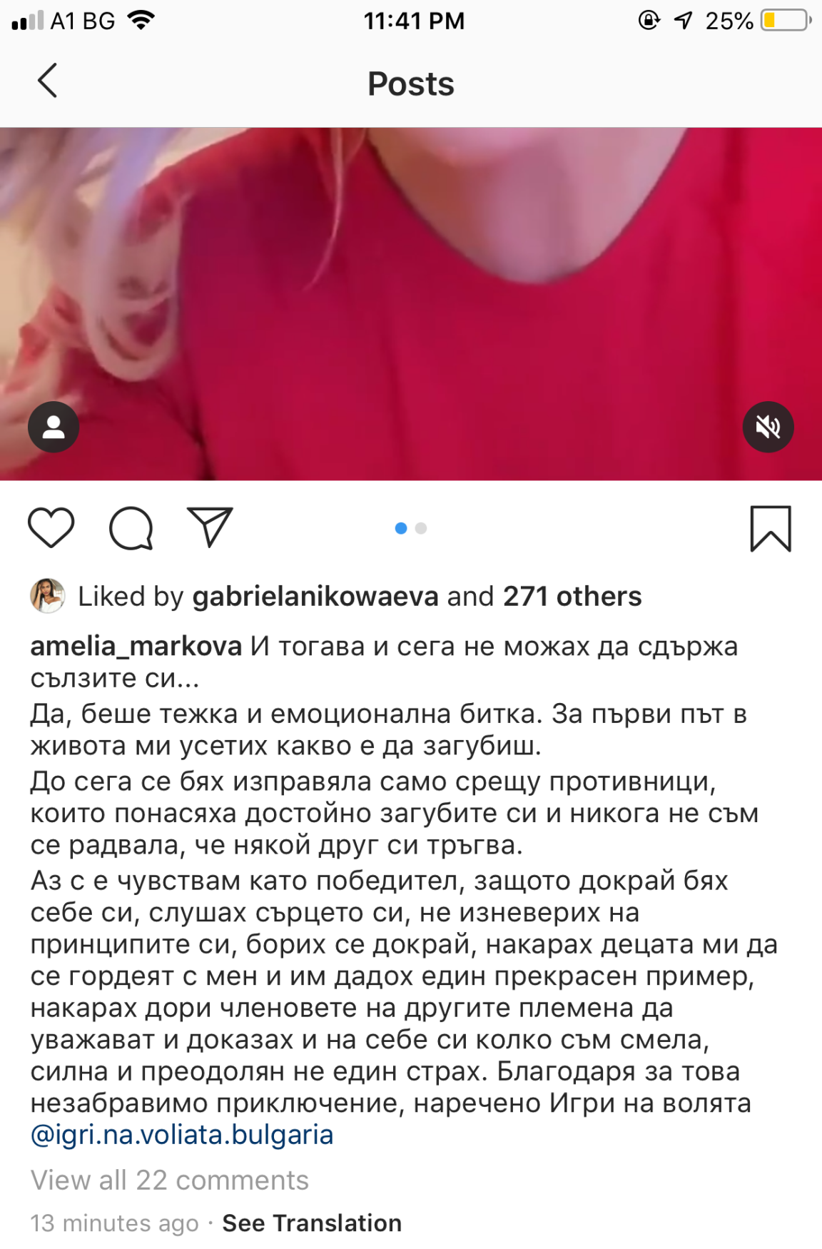 В инстаграма на предаването, Амелия и Марешка са харесали доста коментари - (за Томас) - "Даже не я прегърна това подобие на мъж..." и други подобни, в които нареждат "мъжете" както си трябва.