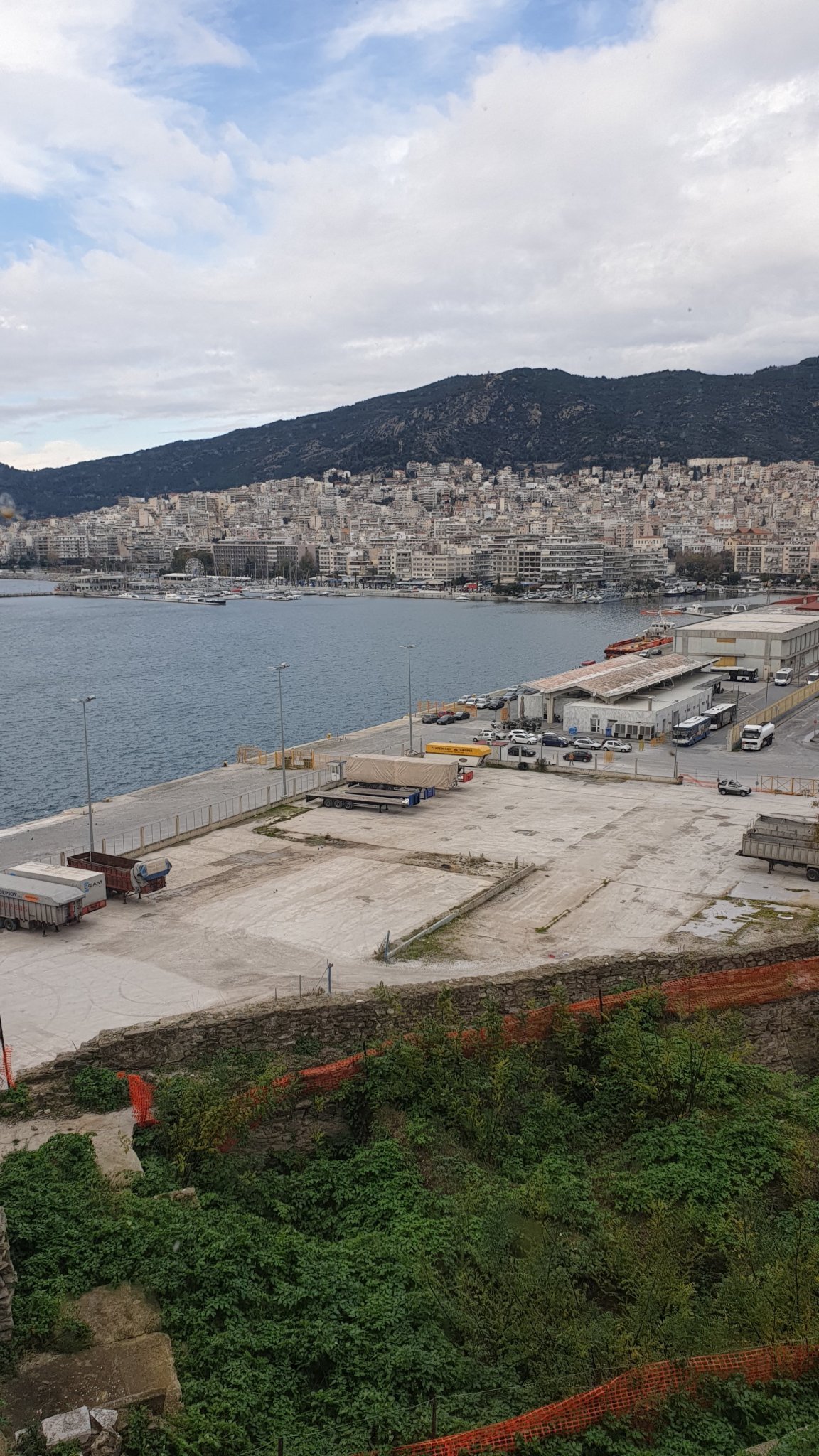 Пия гръцко кафе на една панорама в Кавала... Страхотно е..! Целият залив е пред нас...!