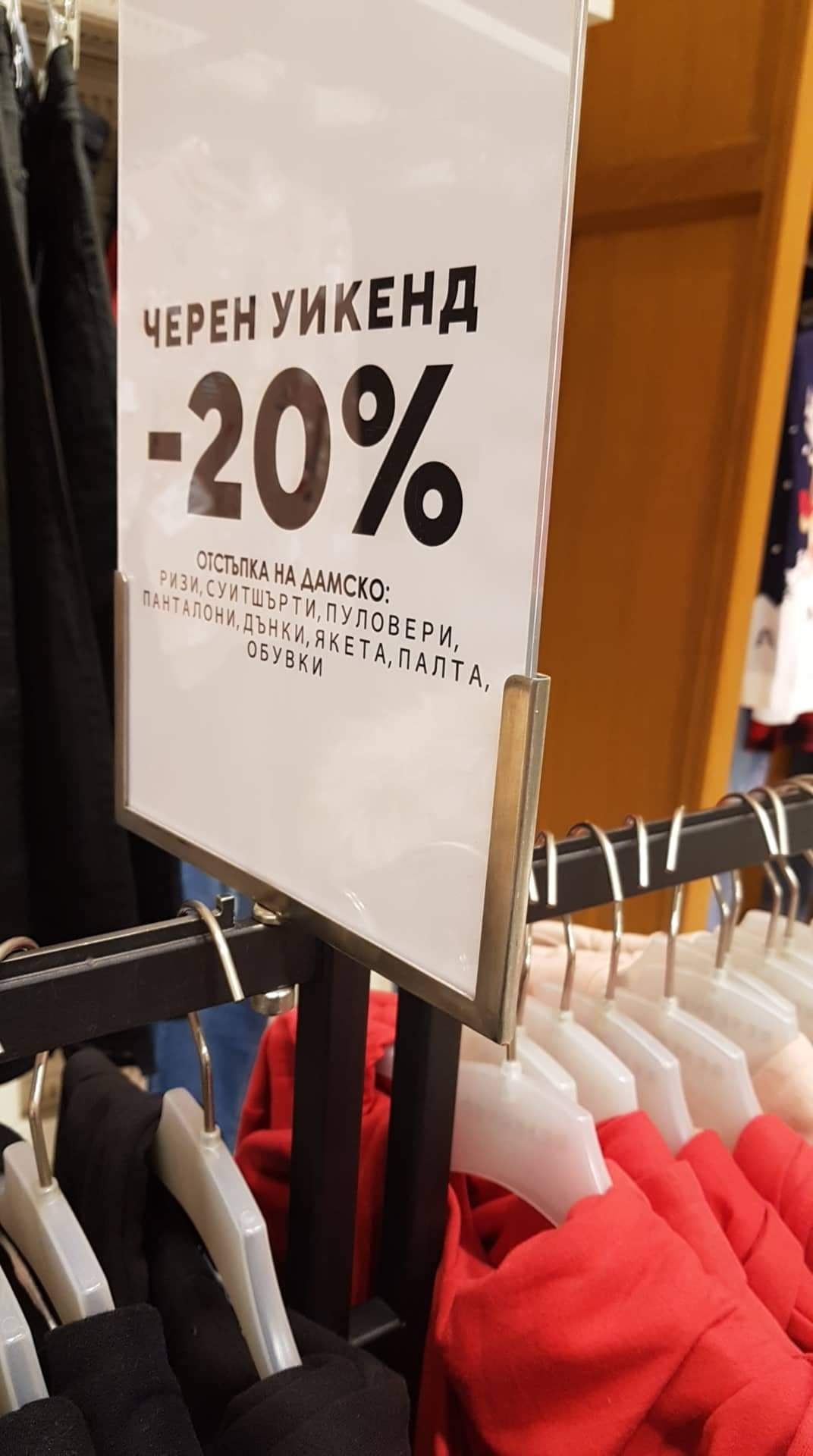 -20 ,ама май не е на всичко,черен уикенд имат,поне в Гранд мола.В делта не обърнах внимание,сигурно пак ще е толкова.