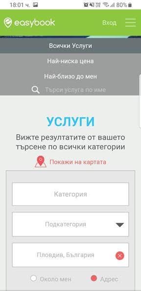 2. Показаните резултати могат да се сортират по категория, цена, разстояние.