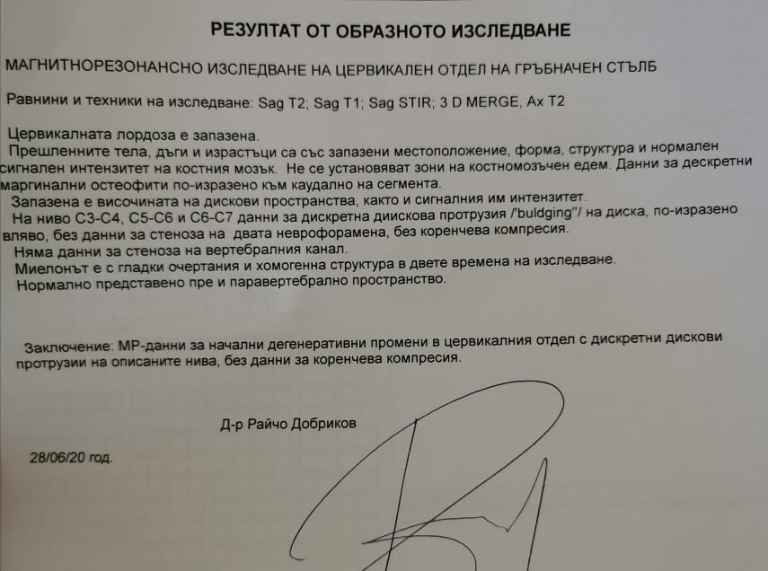 Направим ЯМР-отворен в Спектър, на два дяла лумб и шийни. ,даже ме сложиха и на скенер защото нещо не можаха да уточнят на ЯМР -то ,не се виждало ясно , та всички апарати обиколих.