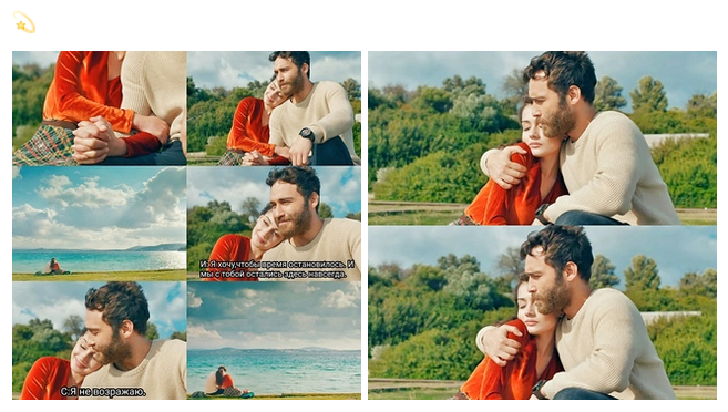 А, че Хазал (Белиз) не е красавица - за мен има необикновена красота, не съм свикнала да виждам синеоки рижавки в турски сериали. (Иначе рижави актриси бол, де, и коя от коя по-красиви.) Радвам се от реакцията ѝ, когато видя прегърнатите Али и Ферман, някак по детски и със съчувствие се усмихна. Иначе не одобрявам изобщо това, че ги проследи - след като любимият ти човек е избрал да не ти сподели нещо, е по-добре да уважиш решението му, не да шпионираш. И, аз като вас, се надявам да не развали момента, но мисля, че и няма, предвид фрагмана за следващия епизод. Hands V