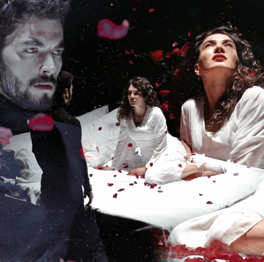 С подписью:" А ну-ка теперь посмотрим что будет с Азизе Асланбей, что сделает Миран, Рейян что сделает, родиться ли Гюнеш?"