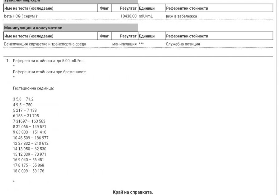 Означава,че стойността на бета чхг отговаря към 6 седм. Страхотен си е резултата