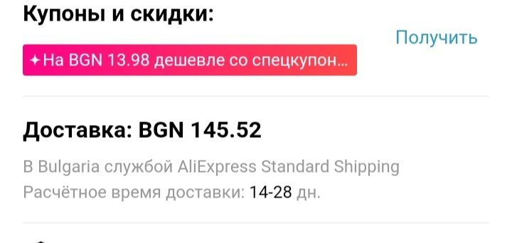 13.98 отстъпка от купони и 145.52 доставка до България. Май в случая е включено ДДС-то, но цената излиза като тази у нас и е безумно при тези условия да се поръчва от майната.