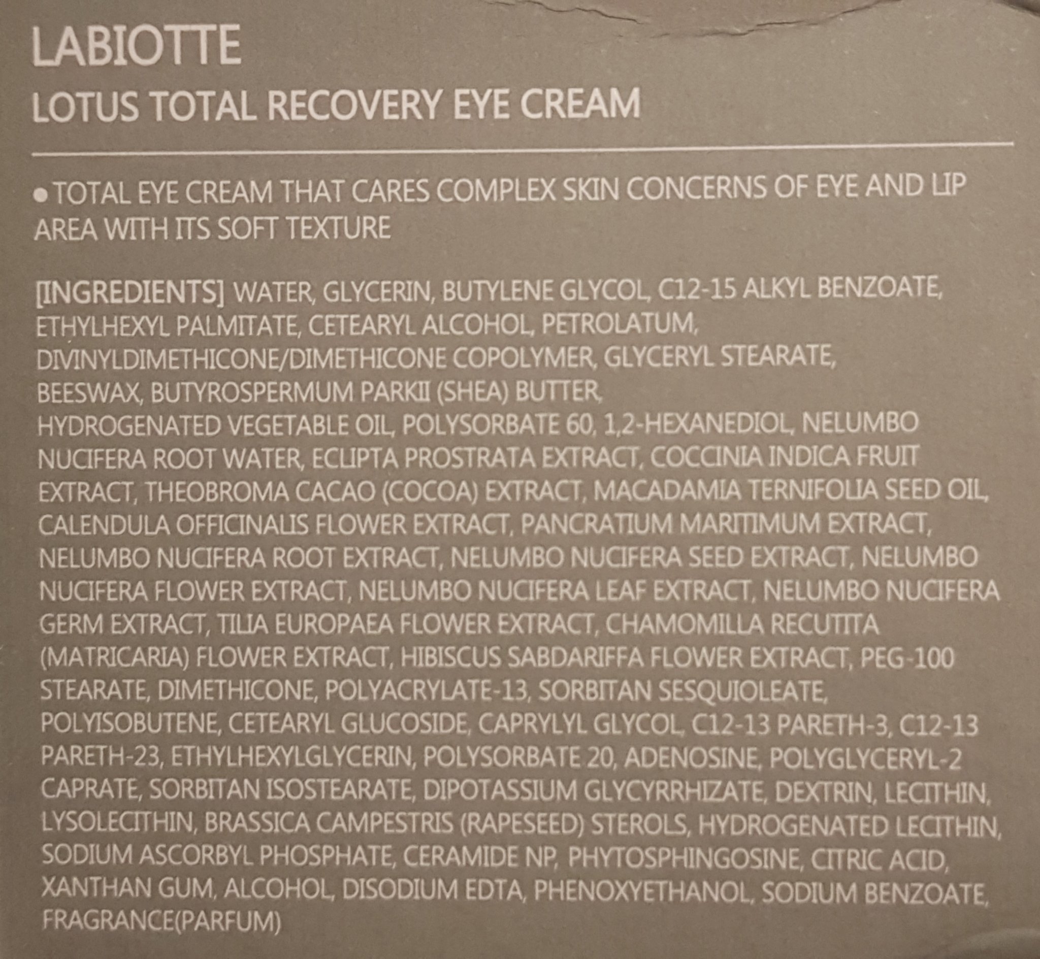 Сега съм с Labiotte Lotus Total recovery eye cream и е един от малкото продукти, които не искам да свършват. Вече наближих дъното Disappointed