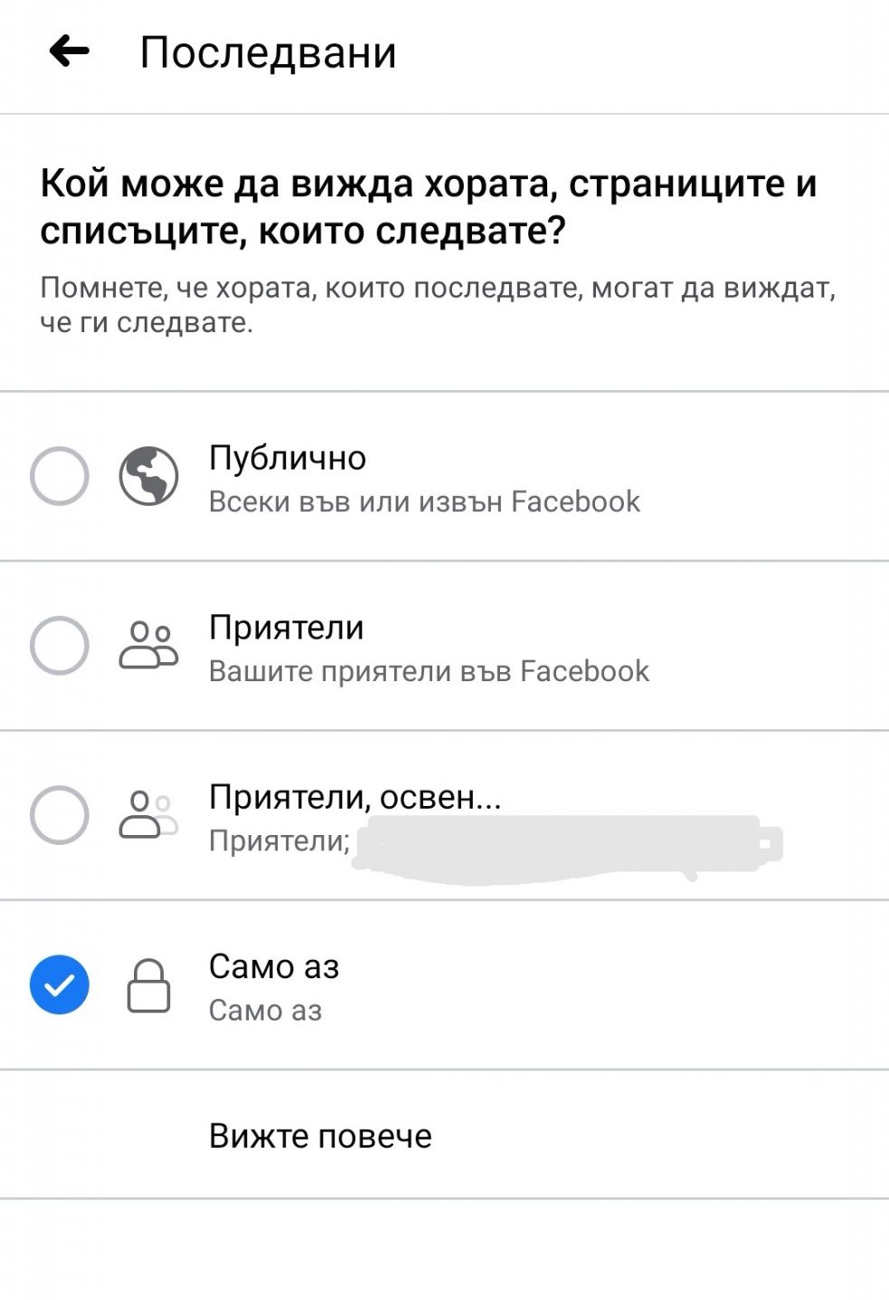 Има опция, в която хората да не могат да виждат дали си приятел на някого или не.