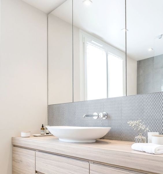 Eстетичен - постоянно ще има пръски по него и мен това би ме дразнило безумно. Иначе много харесвам голямо огледало зад мивка.
