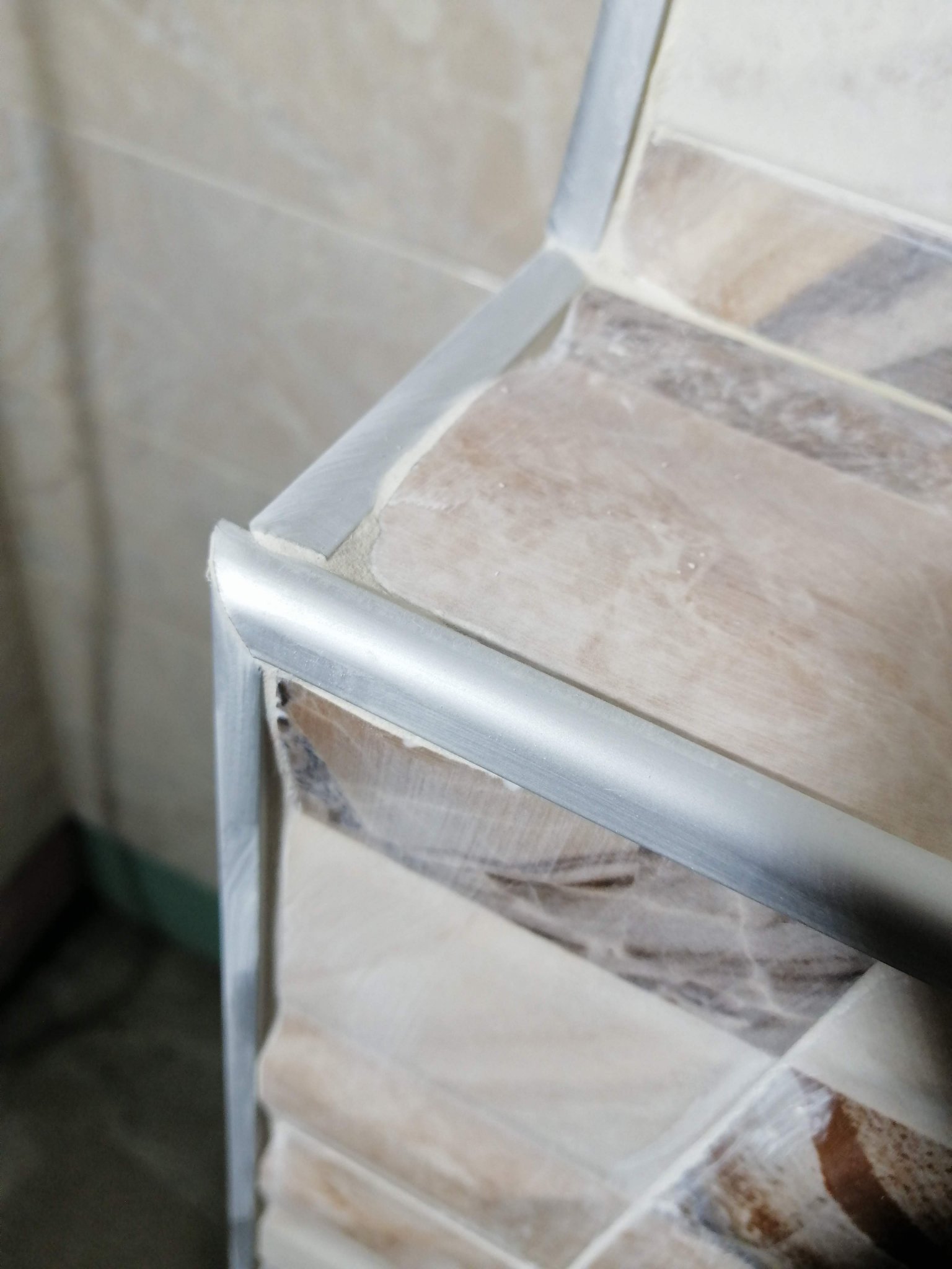 Здравейте, в момента правя основен ремонт на банята в другия апартамент, така че не живеем там и не наблюдаваме стъпка по стъпка майстора, а минаваме всеки ден. Днес останах неприятно изненадана от изпълнението му на лайсните по изпъкналите ръбове. Прикачвам снимки. Вярно че единия вид плочка е релефна, но този връх просто ми вади очите. А гледам че дори е фугирал. Въпросът ми е възможна ли е преработка на този етап вече и как, че на такъв връх може да се заколи някой.