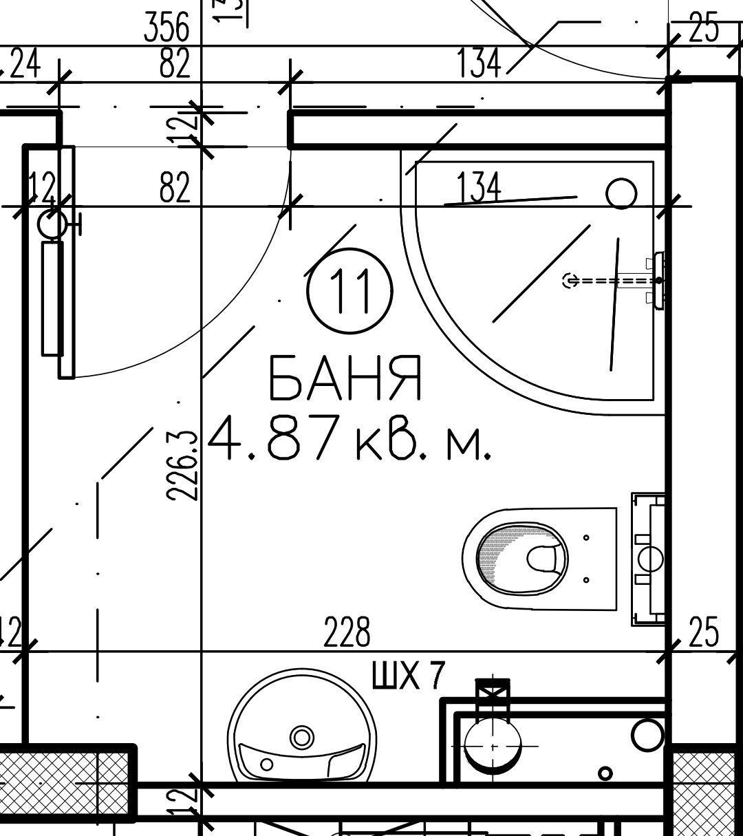 аз не харесвам душ кабини,ама никак,на пръв поглед,душ до вратата не ме кефи,може би бих сменила мястото на душа и мивката.