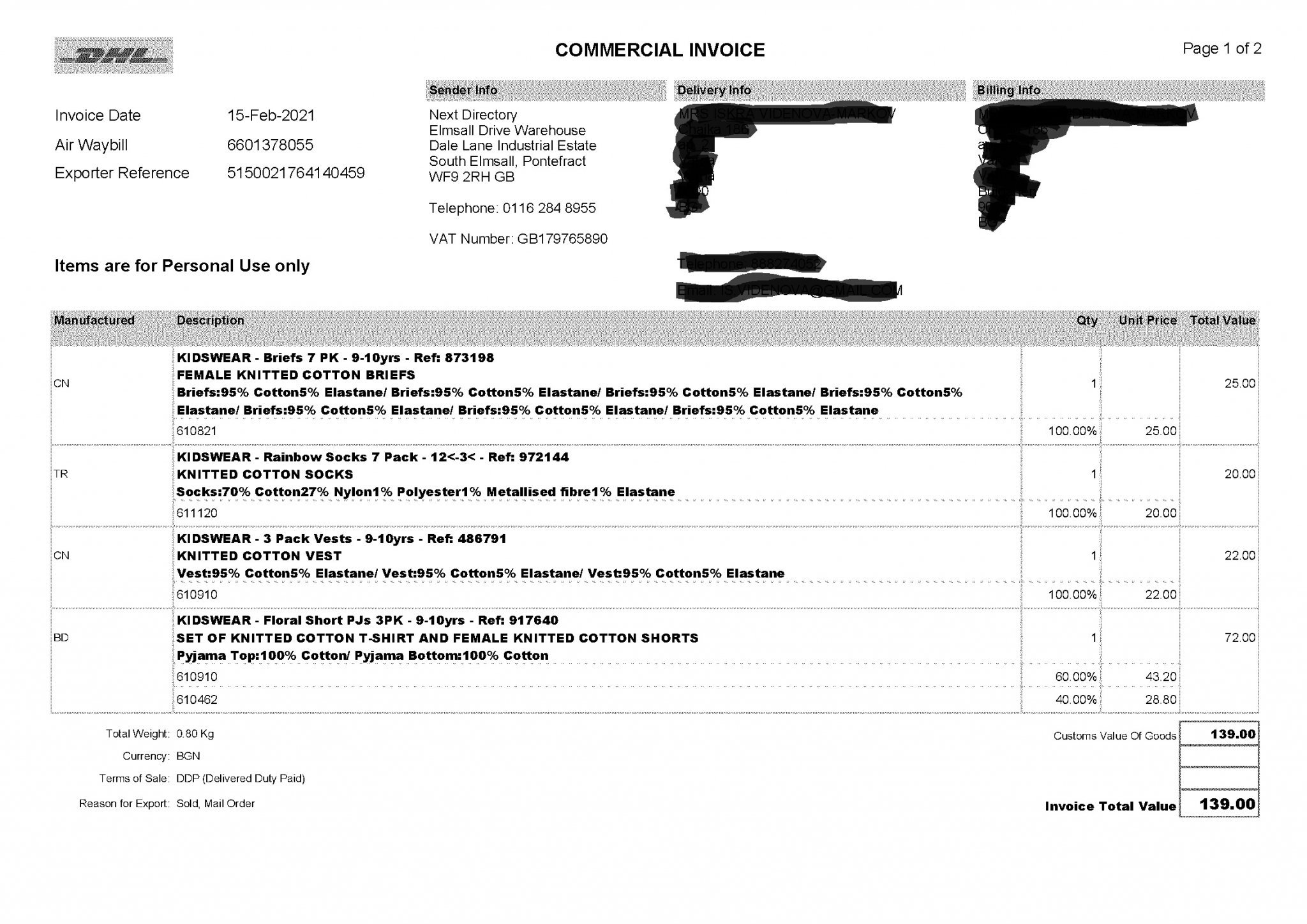 Доставките на NEXT се извършват с DHL, които не работят през уикенда. При получаване на SMS за доставка клиентите могат да зададат удобен ден за доставка чрез предоставения линк. Обикновено пратките пристигат в рамките на 3-4 работни дни. За избягване на доставка през почивния ден клиентите могат да изберат удобен работен ден за доставка.