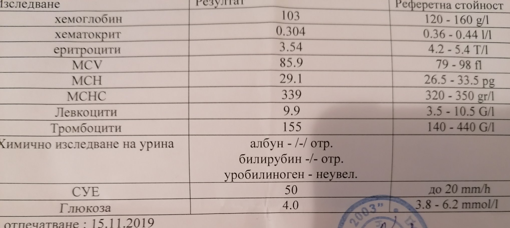 Ходих при личната ми лекарк, изписа ми направление за хематолог на който ще отида тази седмица.