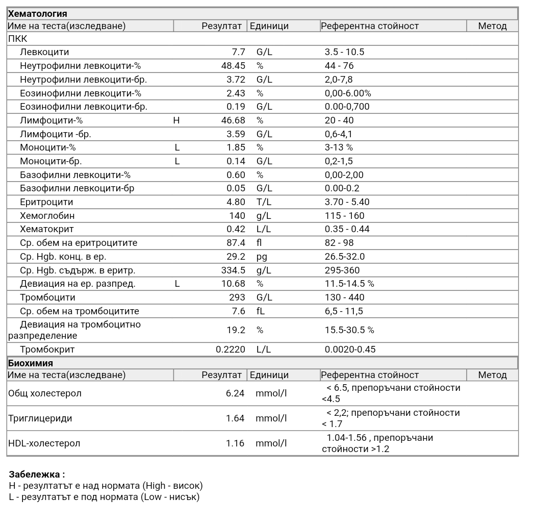 Какво означава ниският хемоглобин и другите стойности в кръвните изследвания и какви допълнителни тестове се препоръчват?