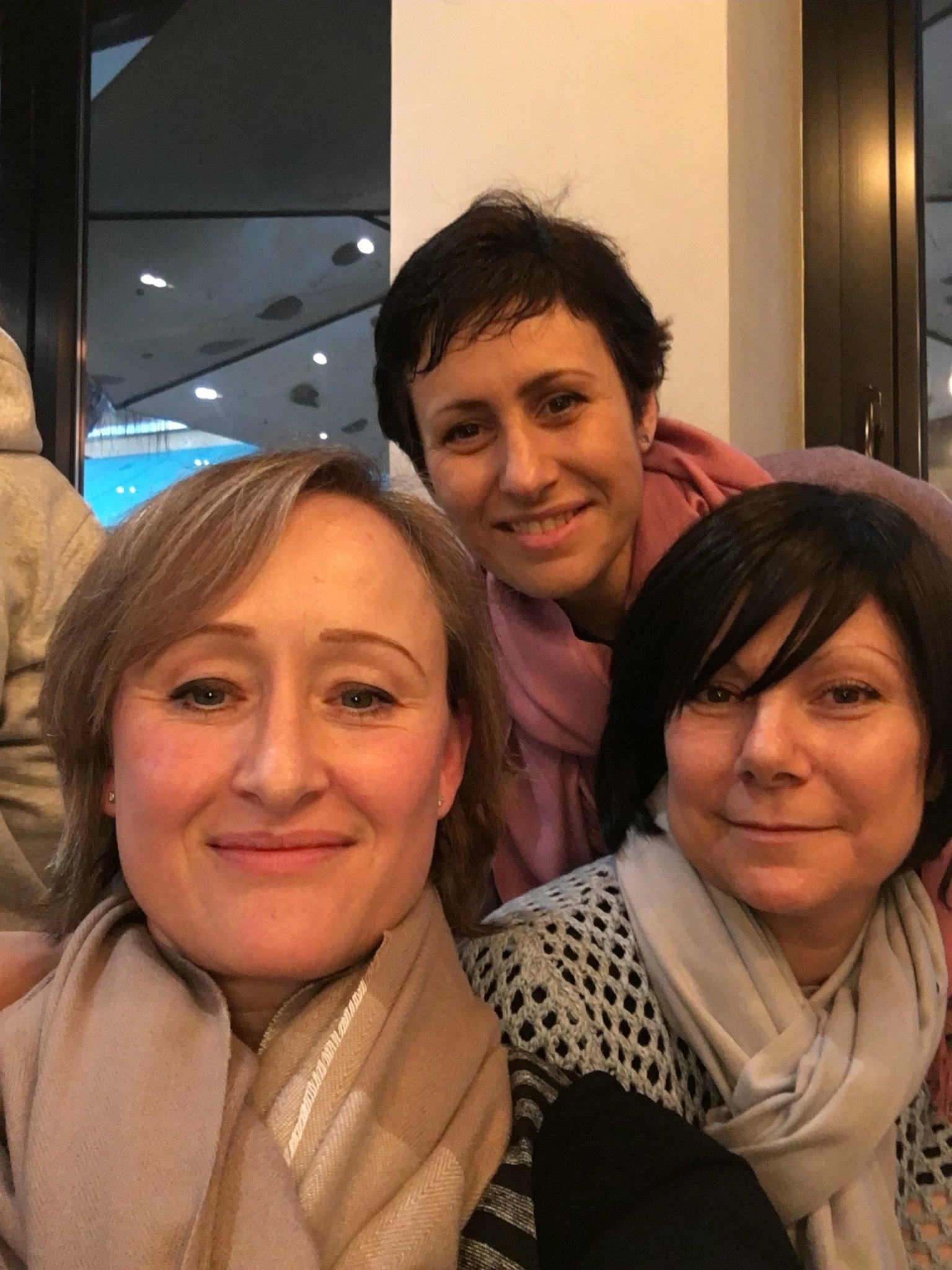 Нещо се обках хиххи. Ама то русокоската е с розов шал