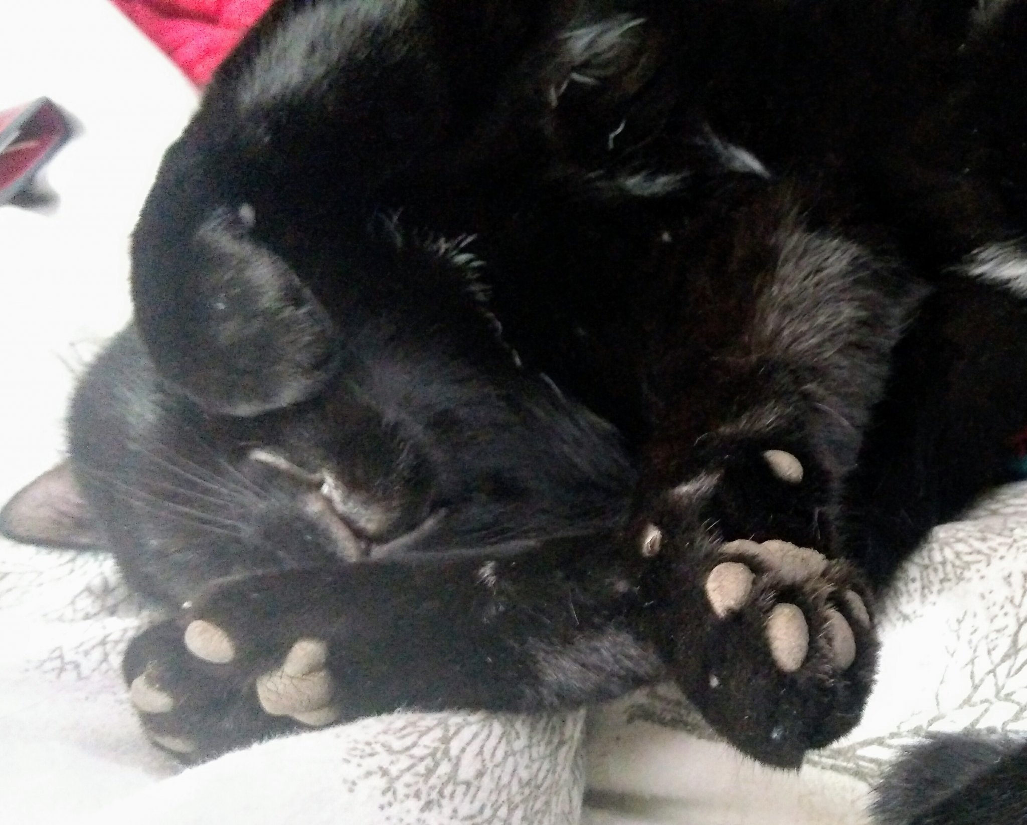 Днес не съм на работа и Блеки е щастливо изтегнат в леглото ми.