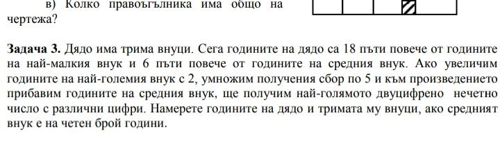 Е, това каква задача е? Мецане, дай някоя с 12 кебапчета и 6 пържоли.