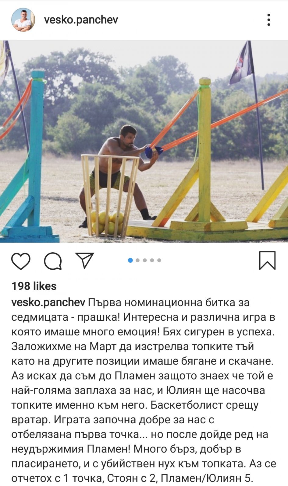 Играта утре вече написах, че според мен ще я спечелят траките. Особено ако Пламен участва. И то не защото са кой знае колко силни Кудкудячковите, а защото просто славяните са много слаби, просто много слаби. Освен, че са слаби, са и глупави. Първо, един Веско игра сам не може да изнесе. Куцото пиле Март, дето в промото се изцепи "И неговия ред ще дойде hahaha", за Юлиян, толкова за нищо не става, но пък толкова си е повярвал, че когато и да дойде неговия ред-все ще е късно. Томас и той е слабичък, Роберта я оставили накрая да дърпа или там каквото прави с Добрин-ами то е ясно за кого е преимуществото. Там трябваше да е Веско. Та дали с Юлиян, дали без Юлиян, траките все ще бият, той Пламен им е достатъчен. Но о, о, каква изненада-Венцислава отново според мен не играе в битката за сметка на Анчето, или поне така ми се видя? Какъв съспенс, това досега не се е случвало драги зрители, тази така борбена и скатаваща се...пардон, раздаваща се състезателка да пропусне битка!!! Нещо извънредно се  е случило /ако е така де, сега може и да участва жената, все пак тя ги редува-една пропуска, на другата е в топ форма, друго си е да имаш избор, все пак там си на курорт, защо да не си подбираш....разнообразията Wink/.