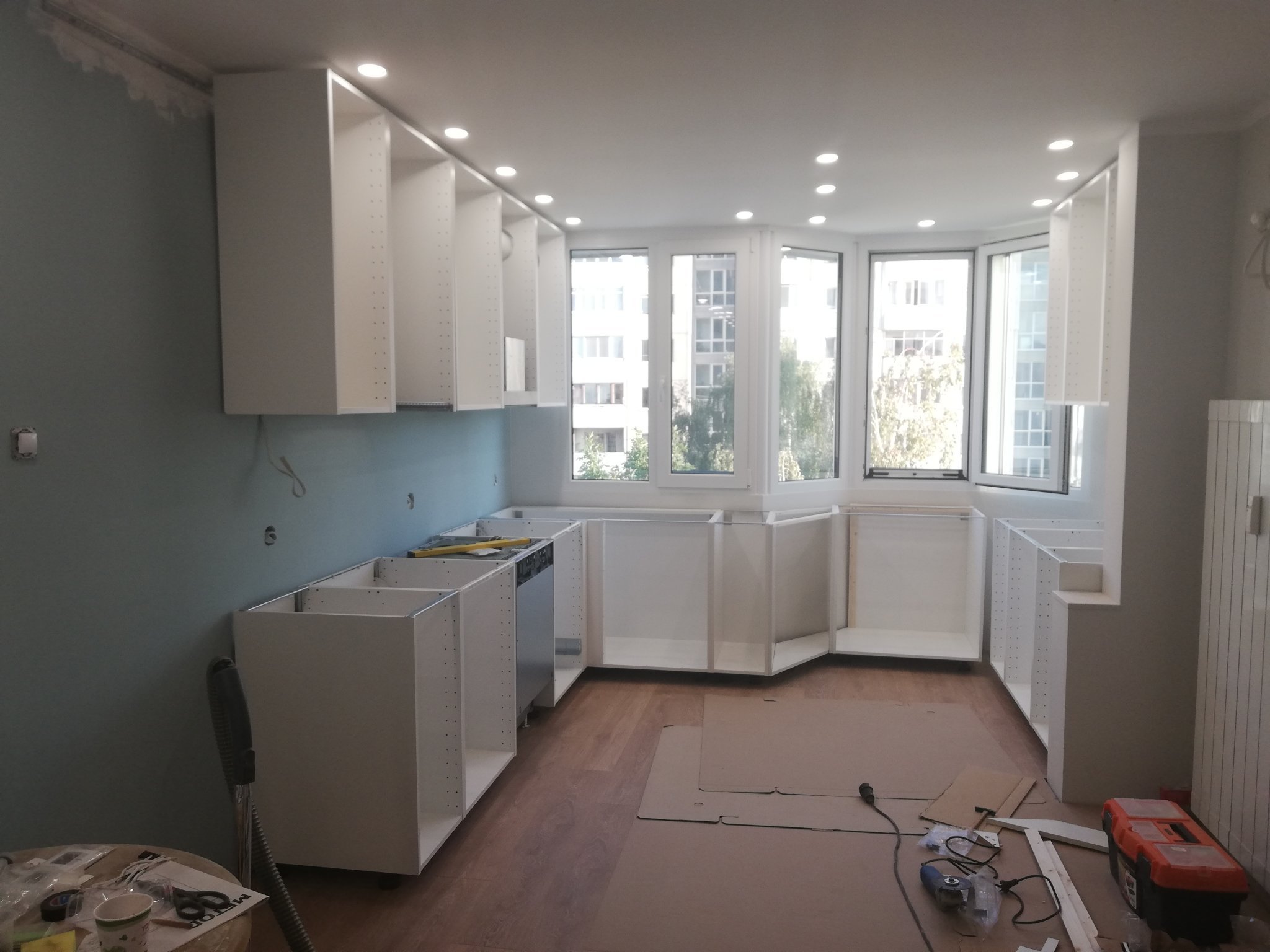 Ако някой го закъса с монтажа, ще дам контакт на един типаж, който за ден монтира нашата кухня срещу 250 лв (едноредова, грубо 3.50х2.70), със все вграждането на миялната, фурната и котлона. Работи монтажист за Икеа, но изкарва на частно човека.
